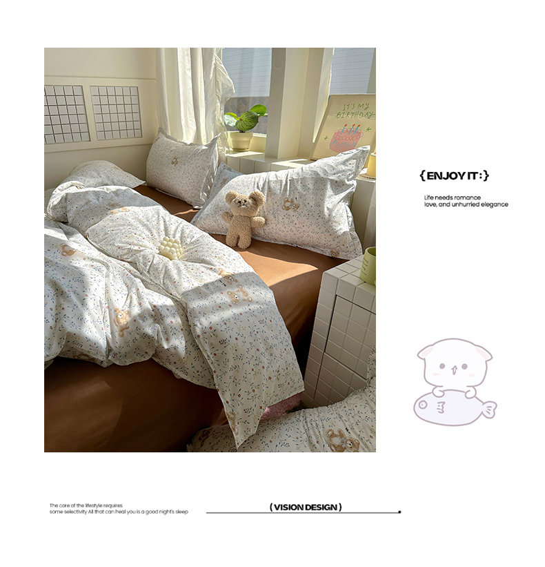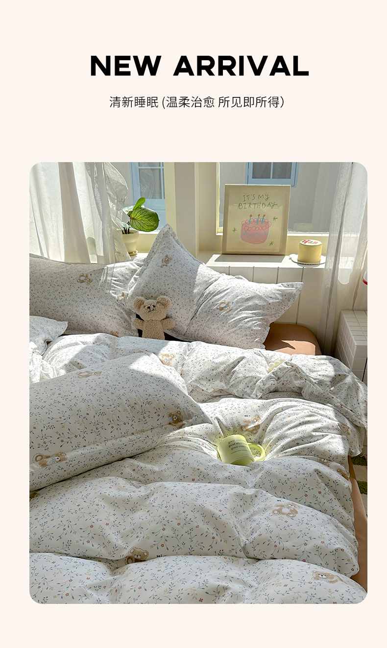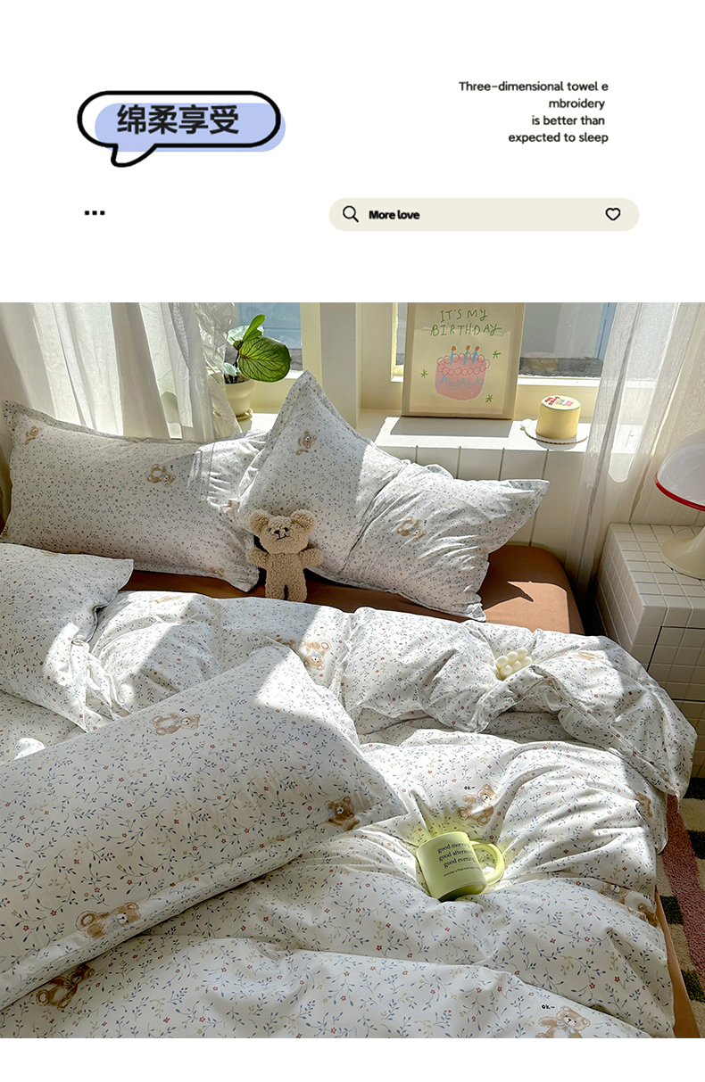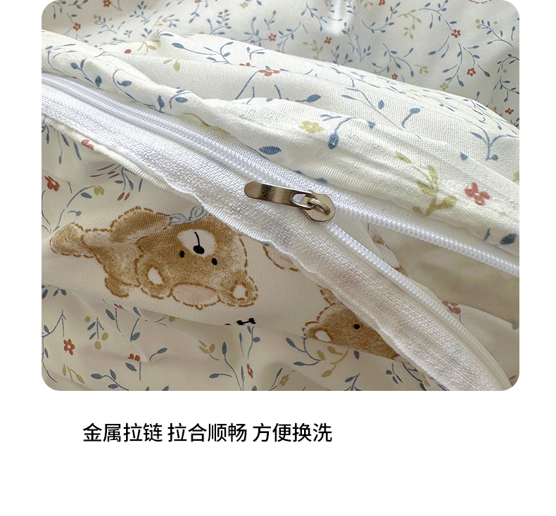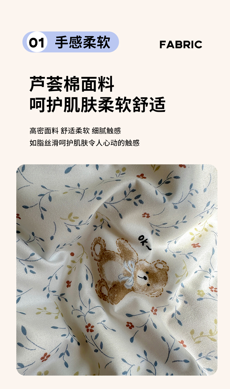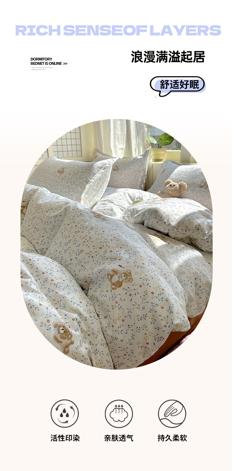 商品名称:宏源家纺 2025新款芦荟棉印花亲肤四件套 熊仔仔