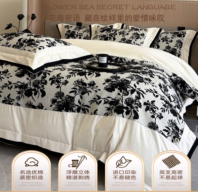 (总)蒂爵 全棉纯棉长绒棉大绣花婚庆四件套,家业兴旺,缘来是你,百花贺喜,玫瑰爱恋,玫瑰爱恋金,情意绵绵
