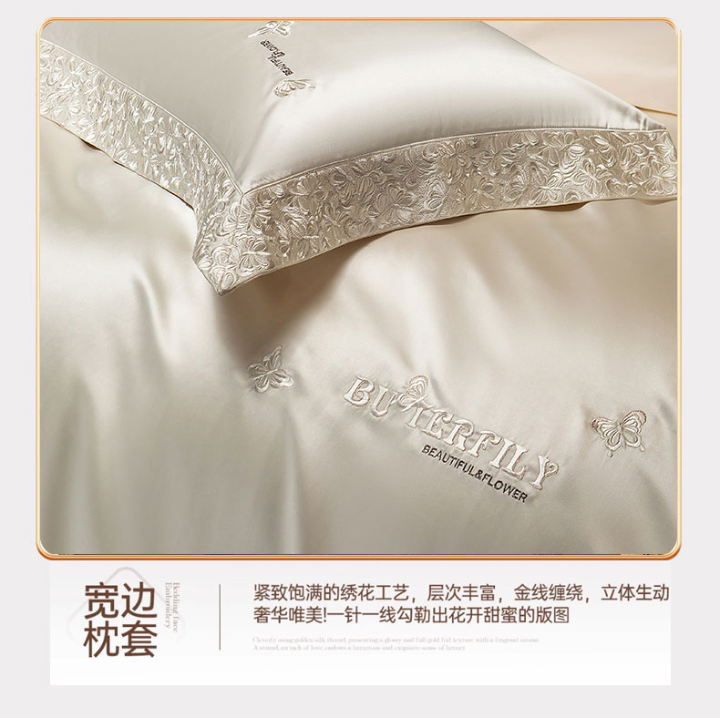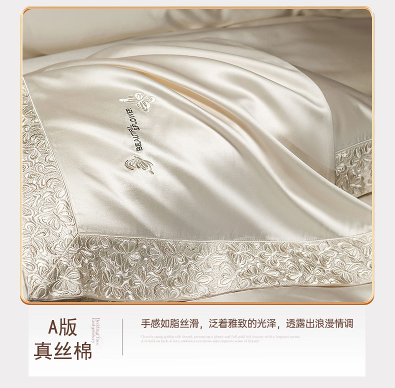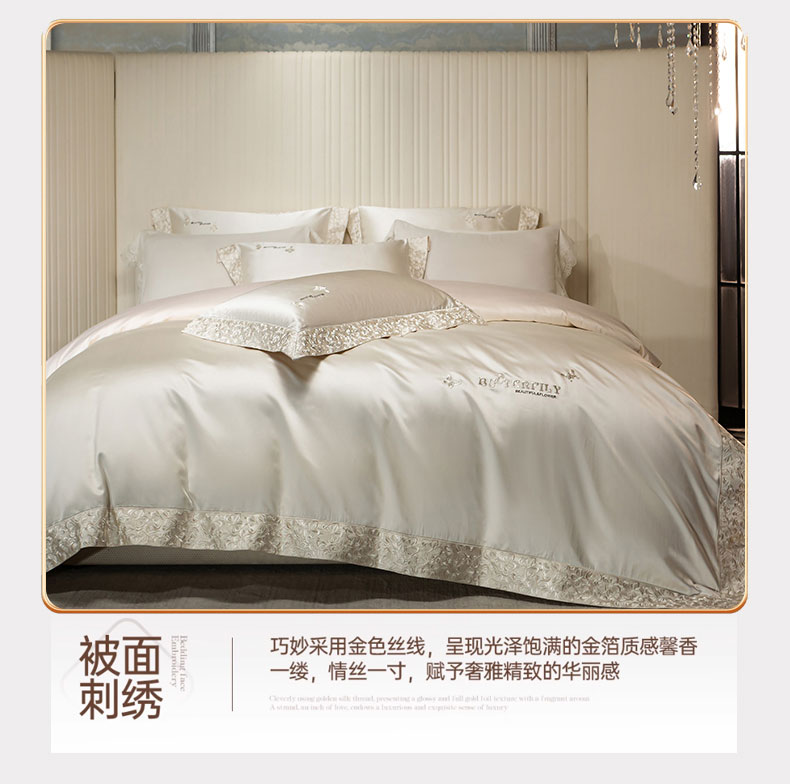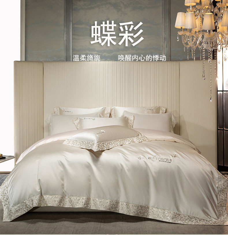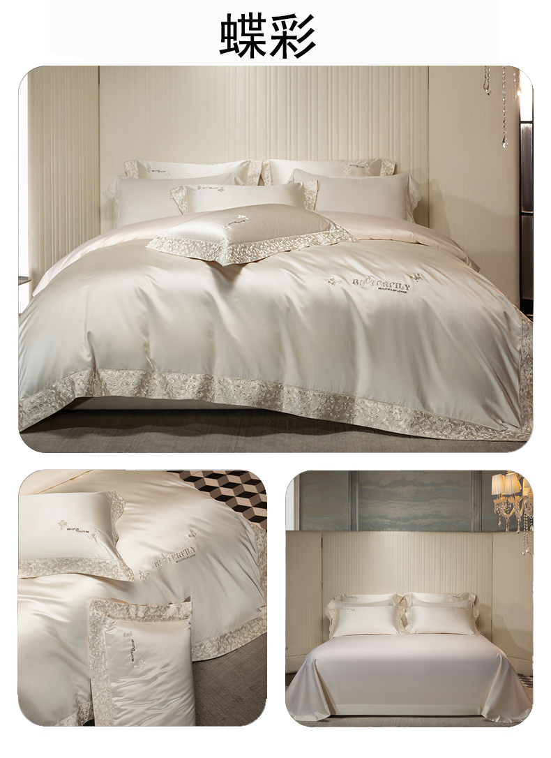 商品名称:蒂爵 2025新款A版真丝棉b版新疆长绒棉时尚高端四件套-蝶彩 蝶彩-珍珠白