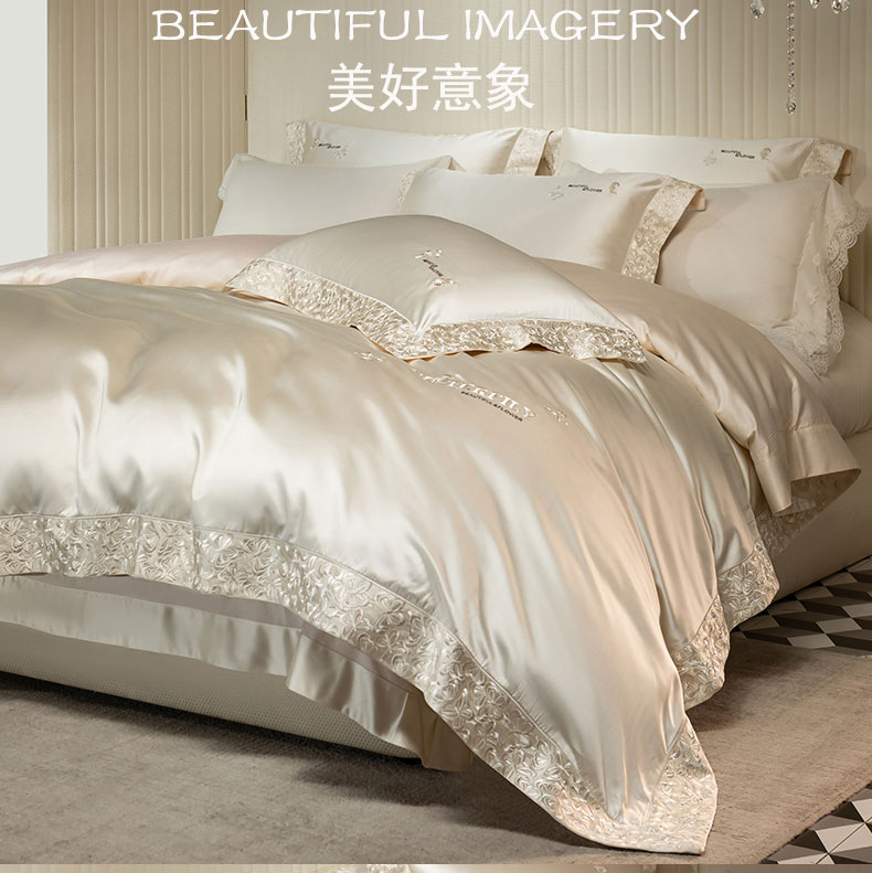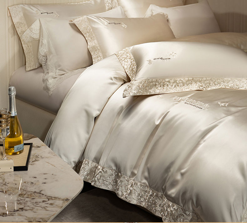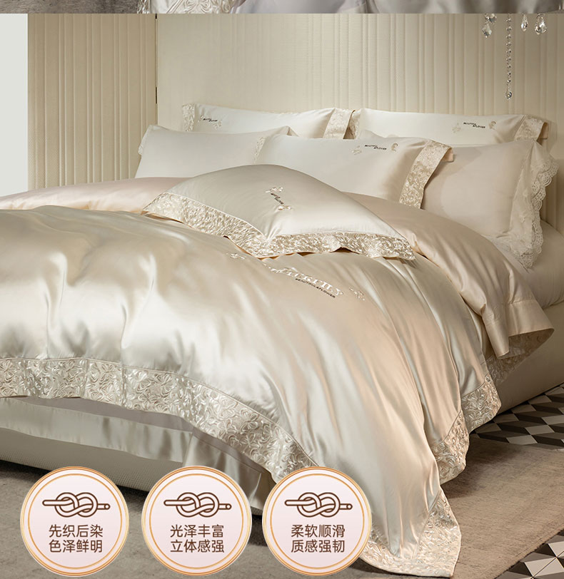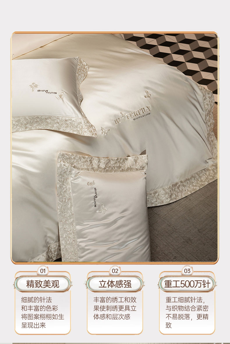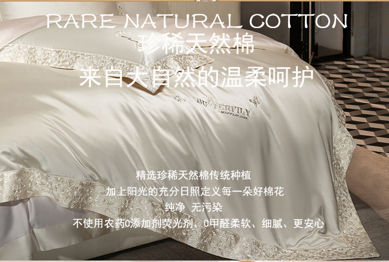 商品名称:蒂爵 2025新款A版真丝棉b版新疆长绒棉时尚高端四件套-蝶彩 蝶彩-珍珠白