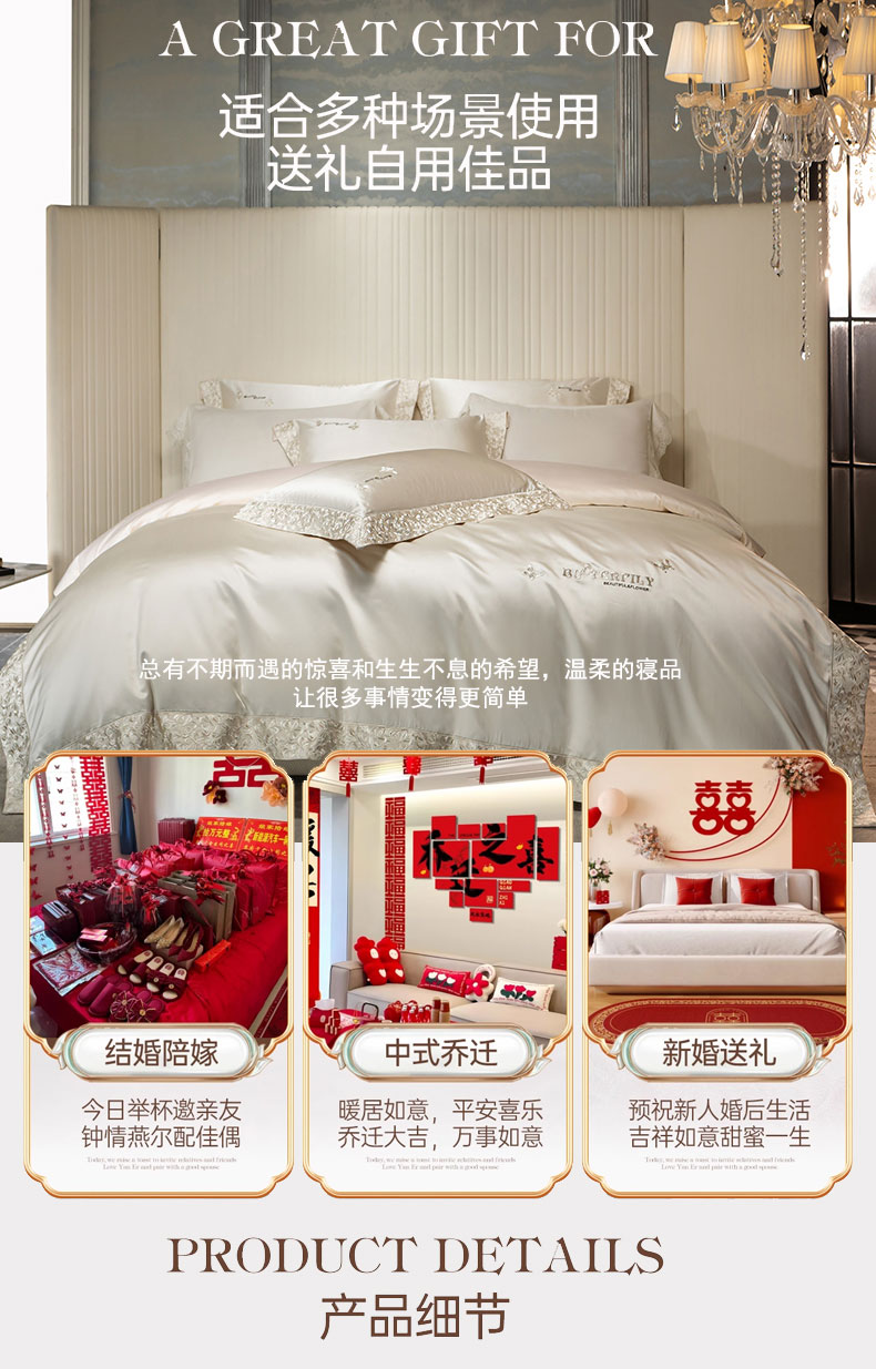 (总)蒂爵 全棉纯棉长绒棉大绣花婚庆四件套,百喜纳福,百子添福,多子多福,锦绣良缘,龙凤添喜,盛世花开