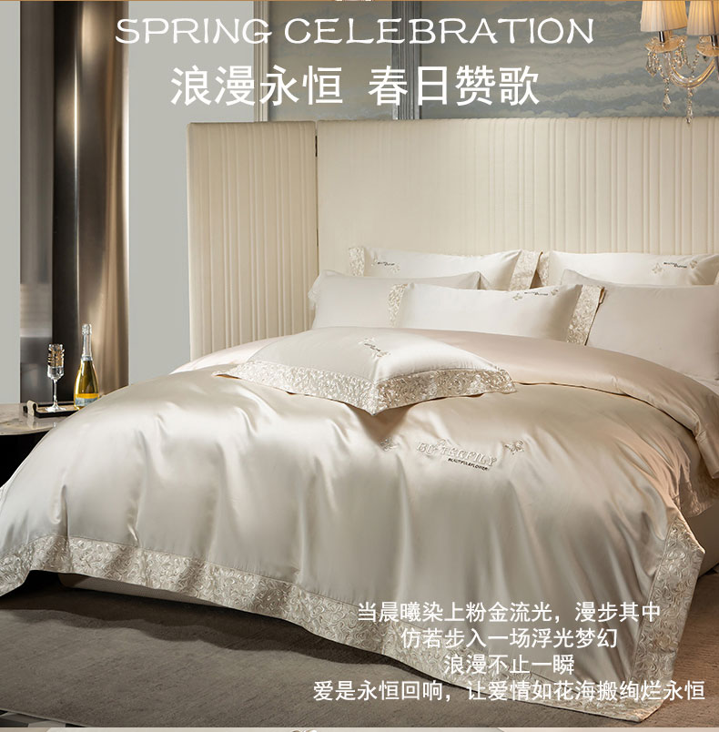 (总)蒂爵 2025新款婚庆长绒棉时尚小红书爆款刺绣婚庆四件套多件套,繁花似锦,天降喜缘,喜嫁,幸福良辰
