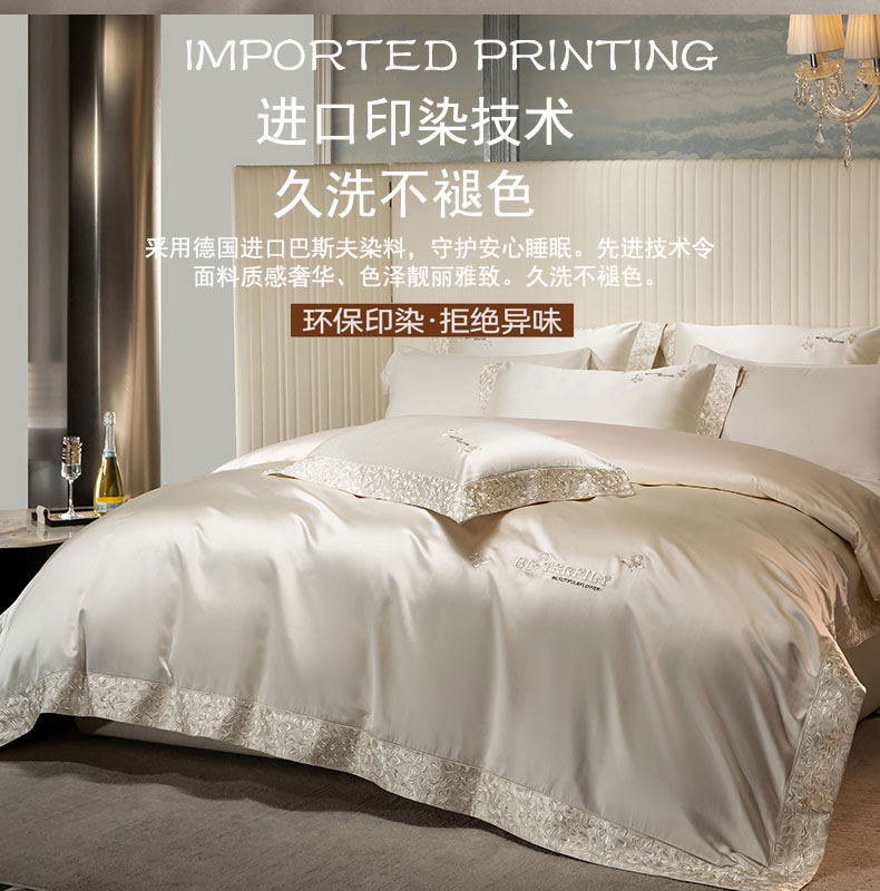 蒂爵 2025新款A版真丝棉b版新疆长绒棉时尚高端四件套-蝶彩 蝶彩-珍珠白