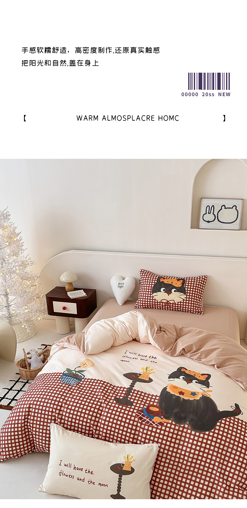 当前位置: 91家纺网 > 商品网购 > 床品套件 > 四件套 > 全棉普通四件套 > RYB红黄兰 开学季2025新款ins设计师原创大版卡通数码印花40s全棉纯棉四件套-场景二 爱心西高地