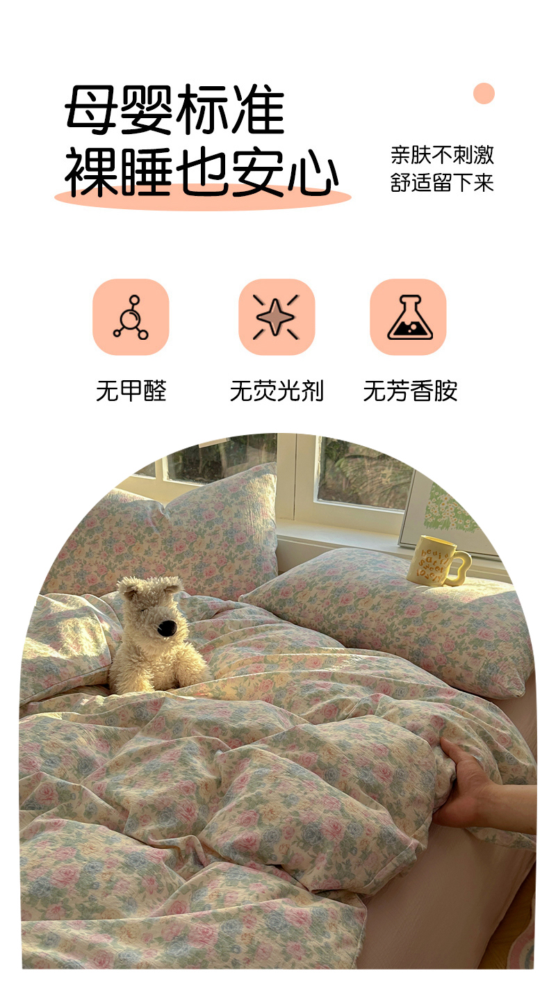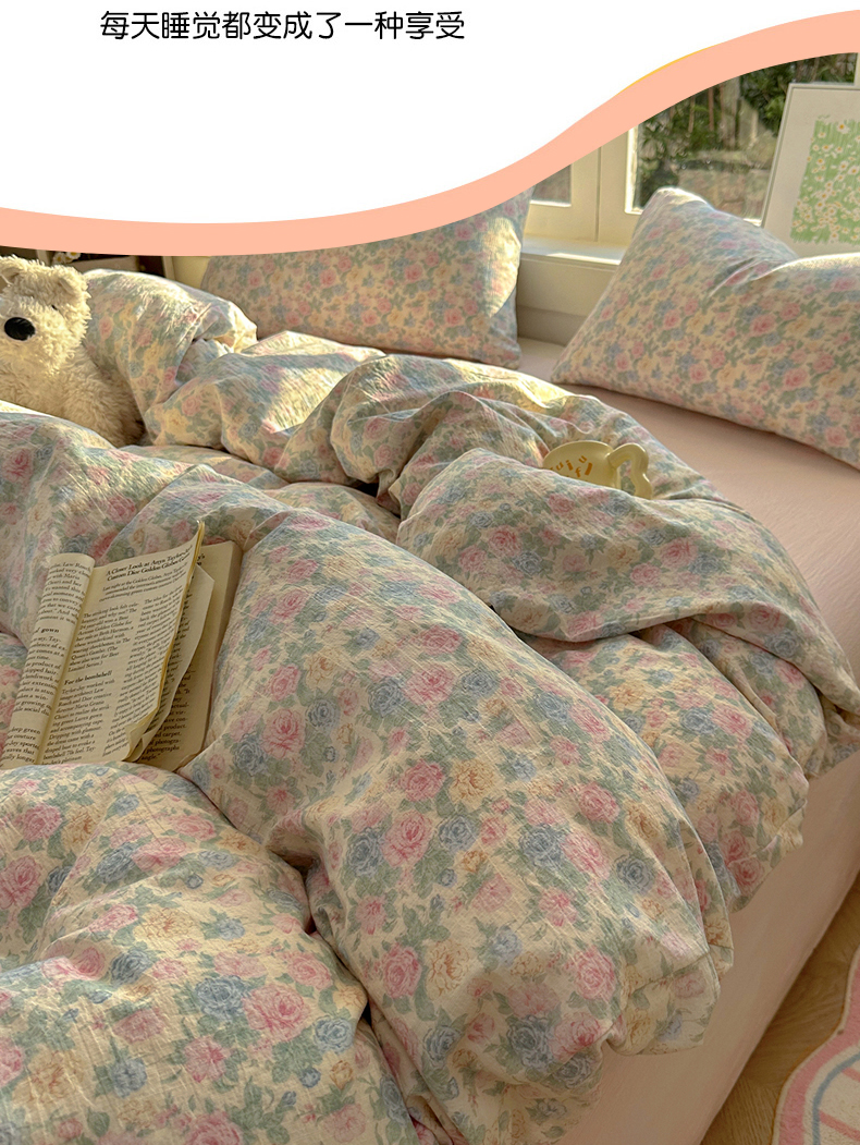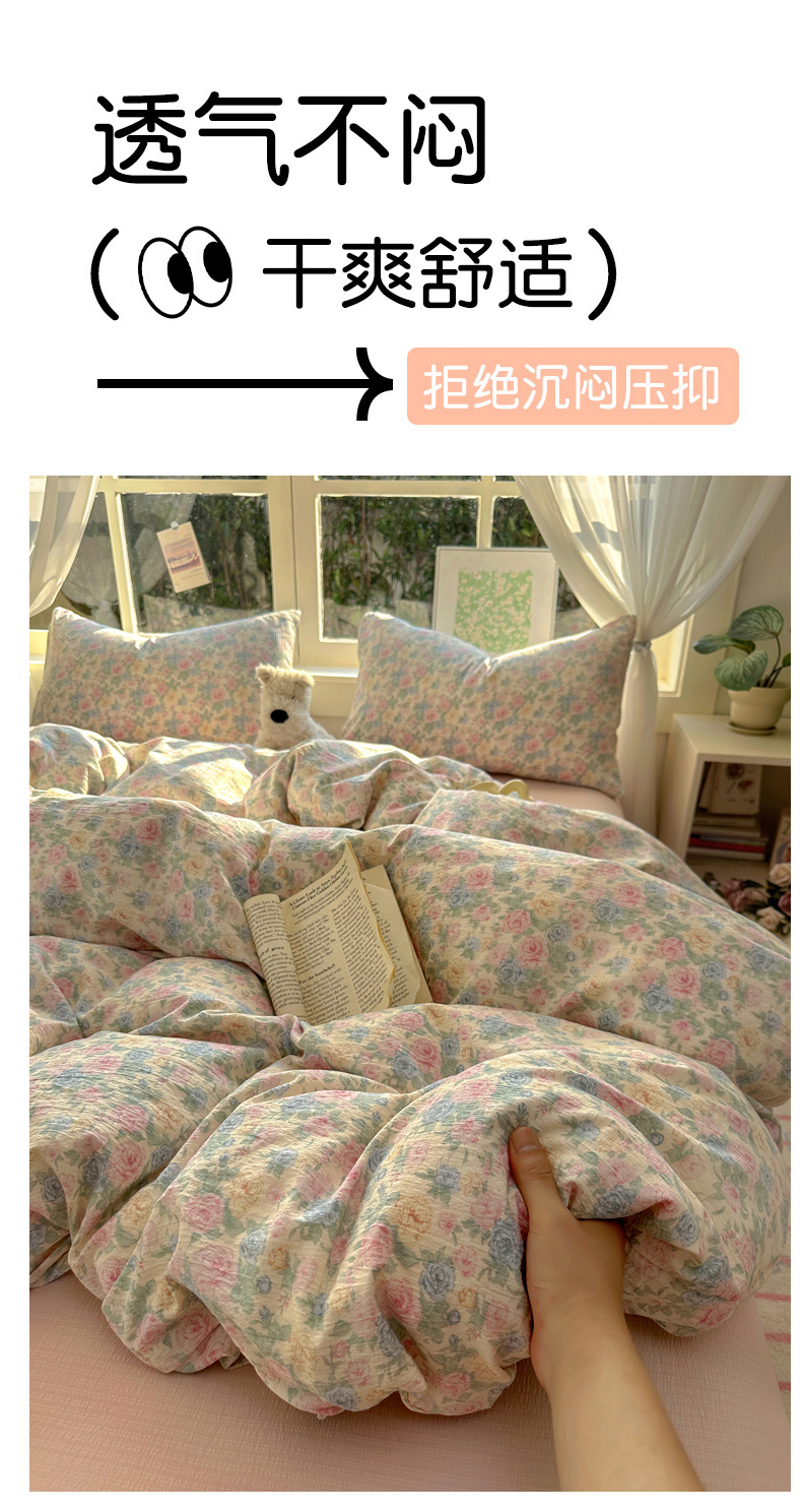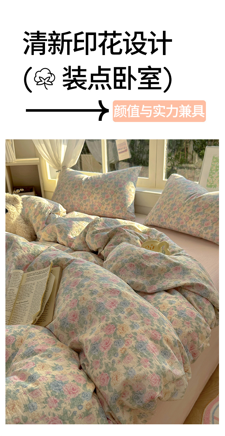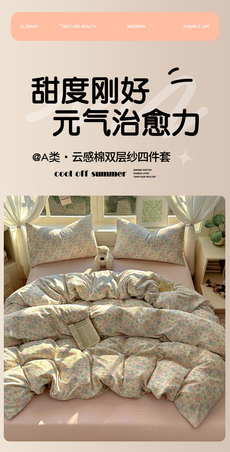 当前位置: 91家纺网 > 商品网购 > 床品套件 > 四件套 > 双层纱四件套 > 耀达家居 2025新款木棉A类有氧双层纱四件套小清新碎花床单宿舍三件套 情书