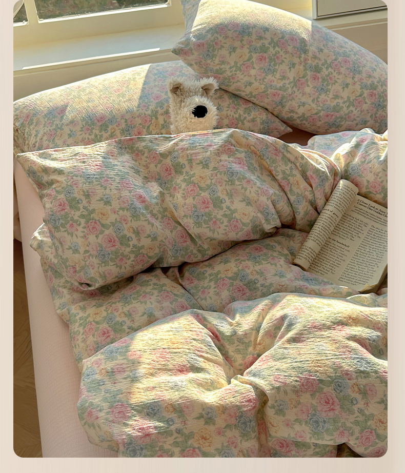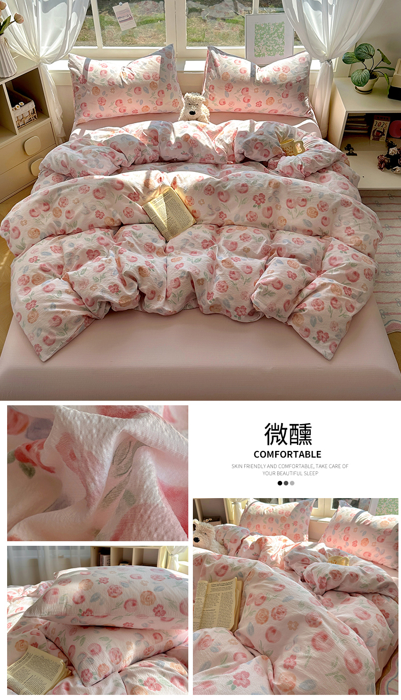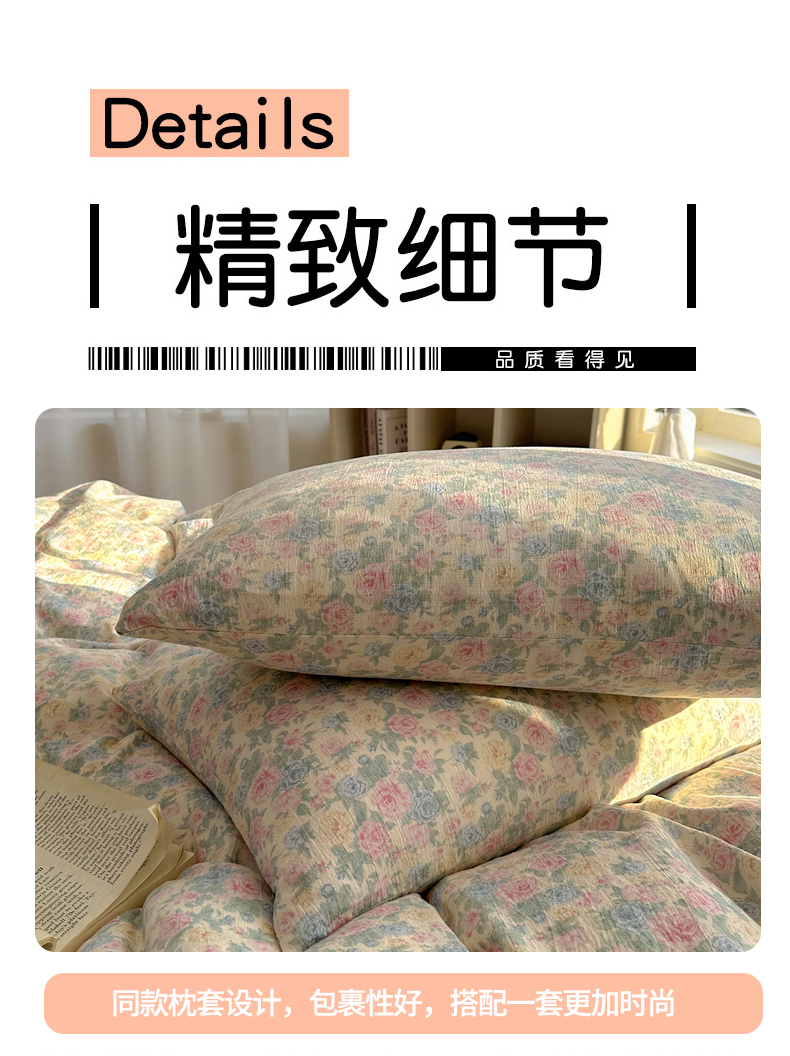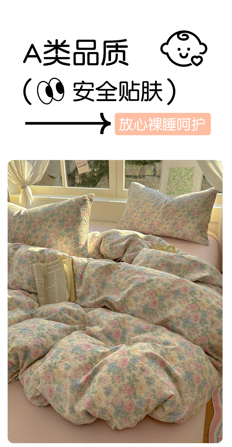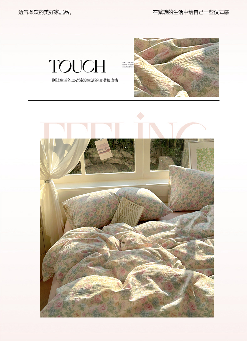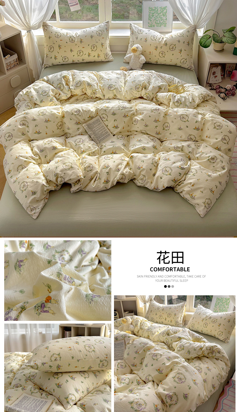 当前位置: 91家纺网 > 商品网购 > 床品套件 > 四件套 > 双层纱四件套 > 耀达家居 2025新款木棉A类有氧双层纱四件套小清新碎花床单宿舍三件套 情书