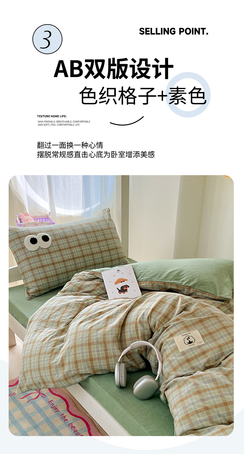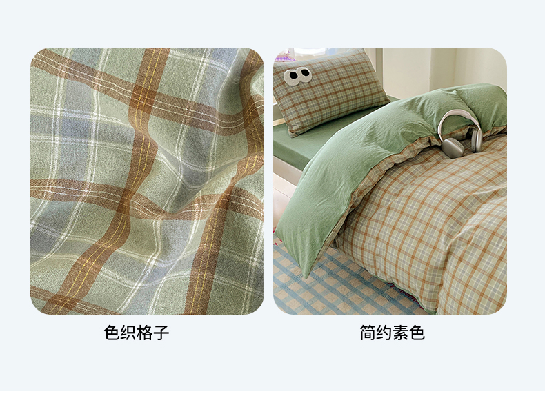 (总)2024新款色织全棉水洗棉四件套,巴莉灰橘,黄小格,维多利亚紫,素色风尚-绿,素色风尚-蓝,素色风尚-灰,暖芙湖蓝,罗拉寻梦,米娅蓝灰,黑中格,粉小格,波西米亚-绿