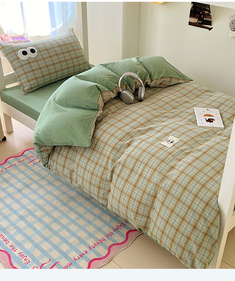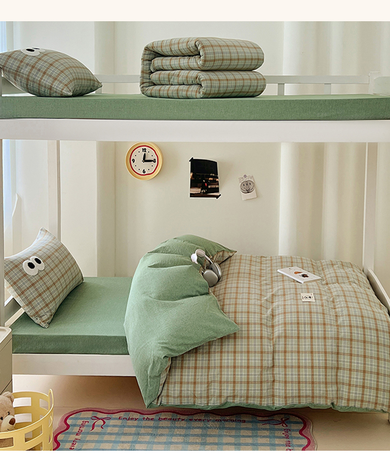 (总)2024新款学生季色织全棉三件套夏天宿舍上下铺学生六件套 ,米娅蓝灰,罗拉寻梦蓝,暧芙湖蓝,维多利亚紫,素色风尚绿,素色风尚灰,素色风尚蓝,黄小格,黑中格,粉小格,波西米亚绿,巴莉灰橘