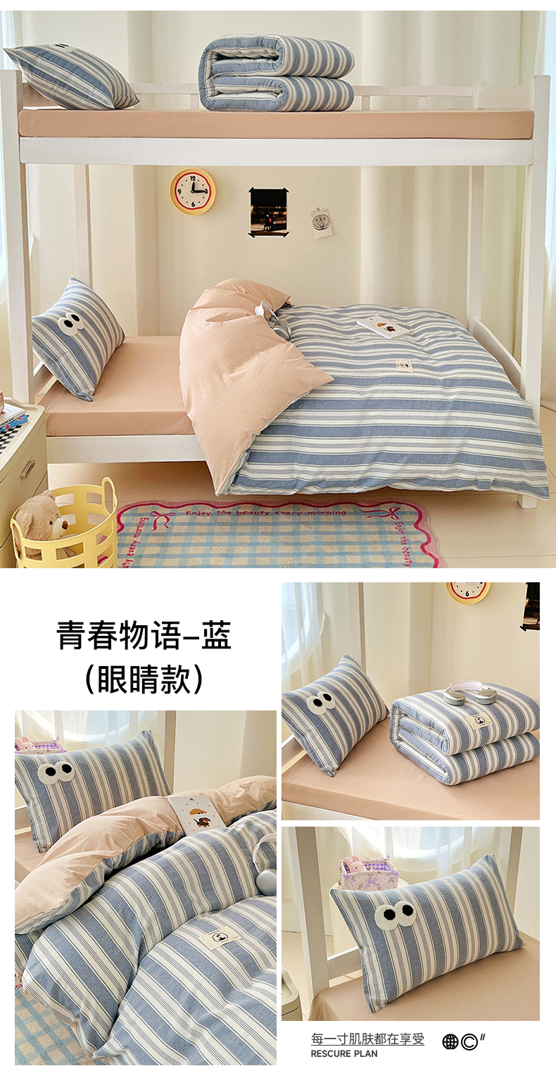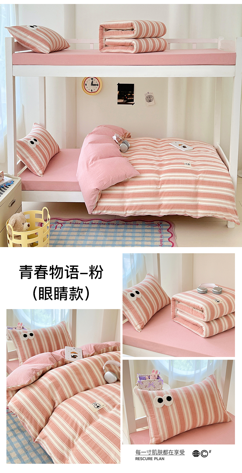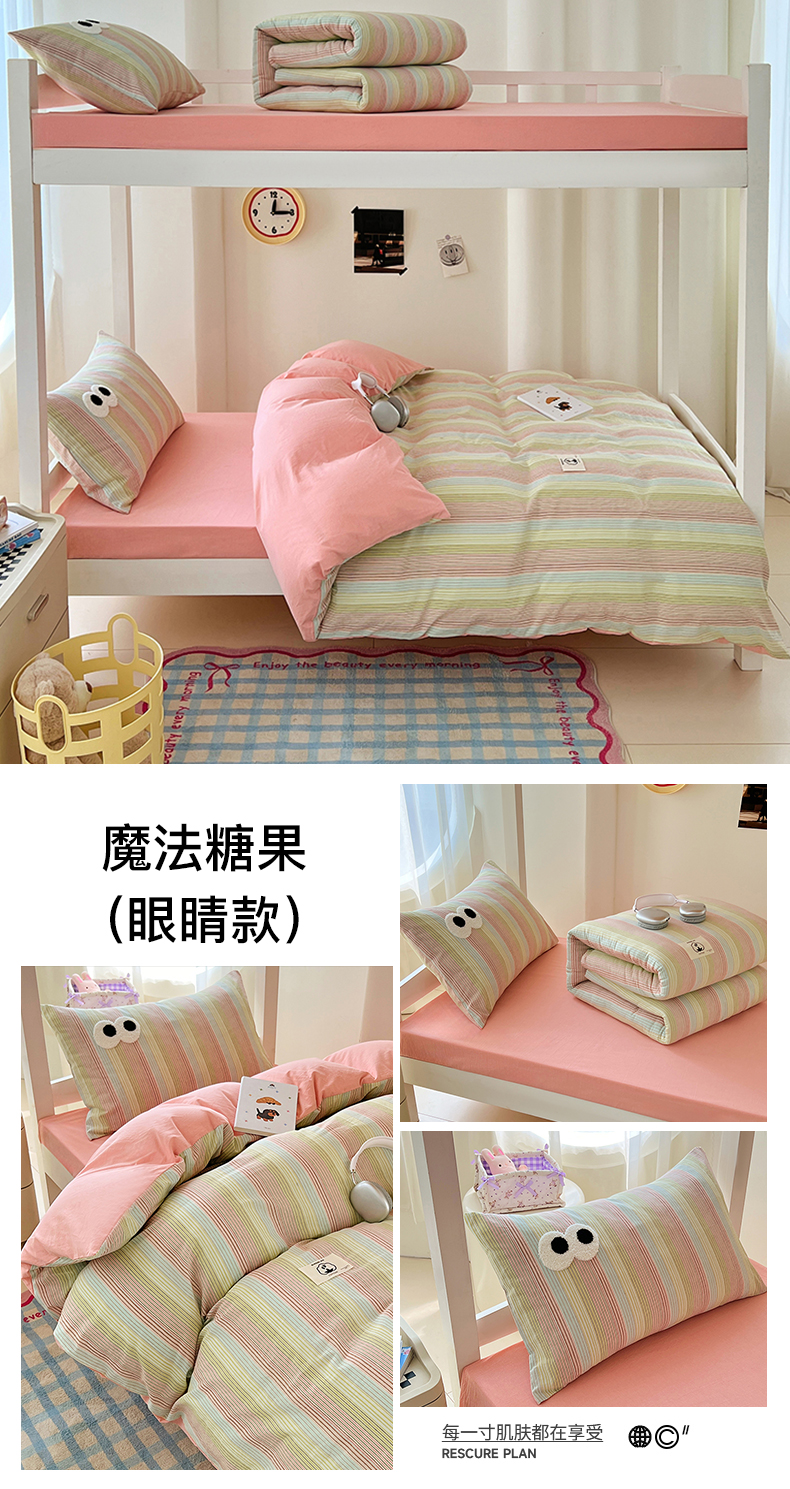 (总)2025新款大眼睛毛巾绣多巴胺色织全棉水洗棉学生三件套宿舍四件套床单被套枕套床品套件