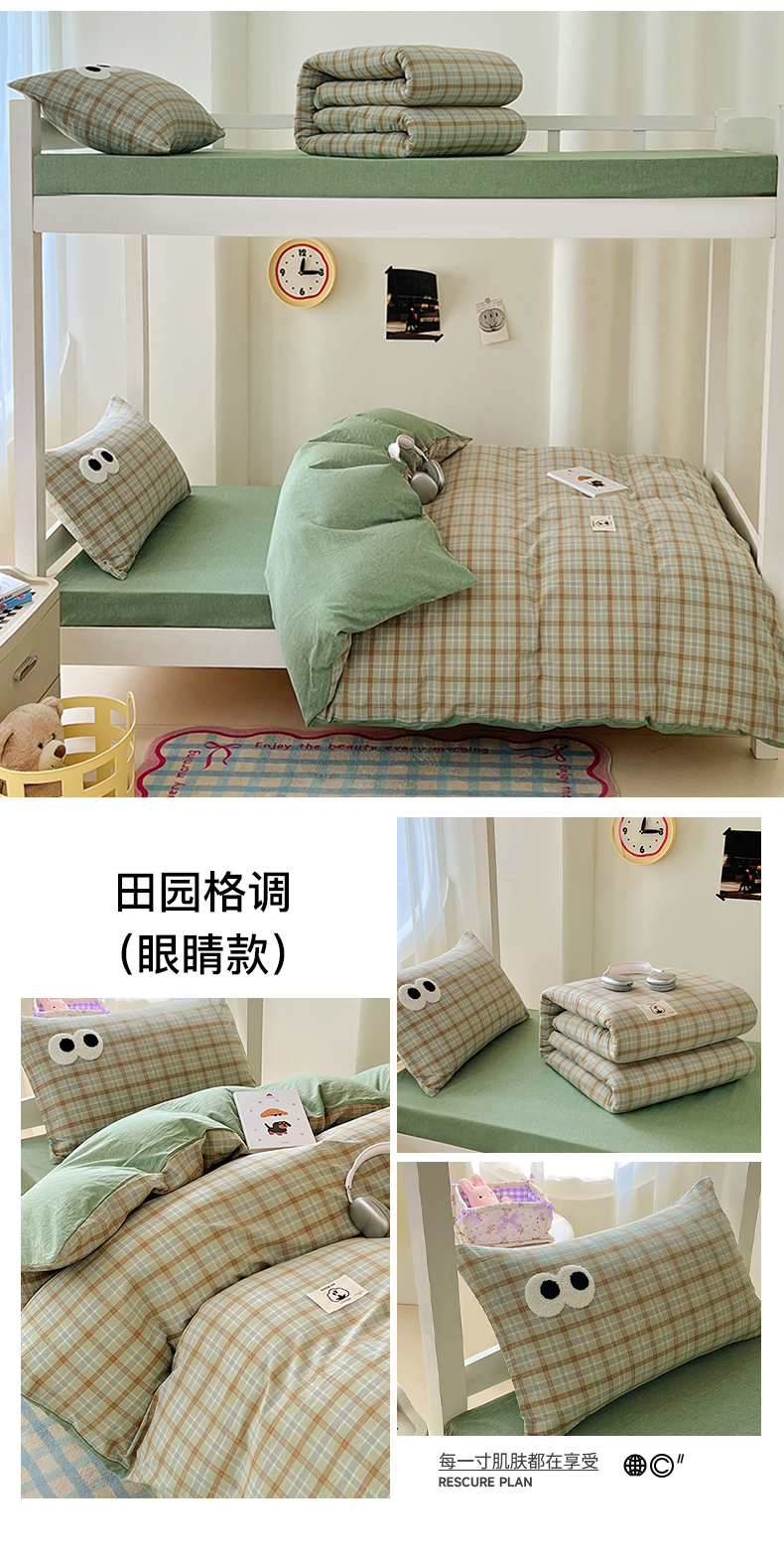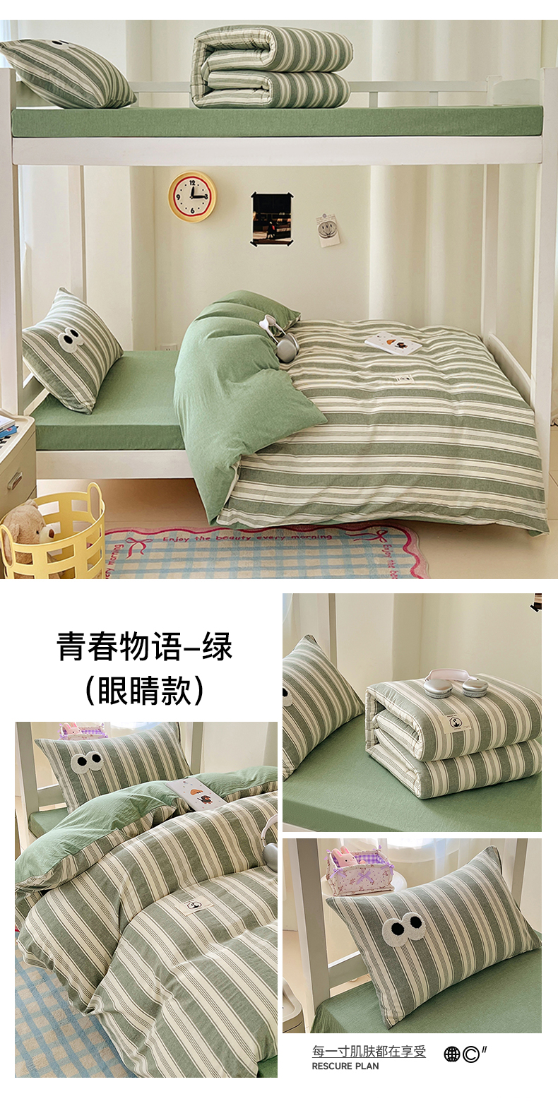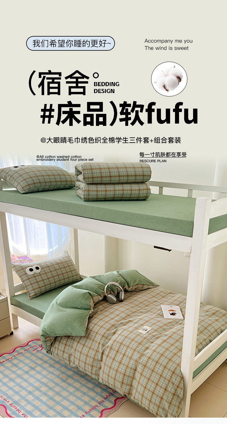 (总)2025新款大眼睛毛巾绣多巴胺色织全棉水洗棉学生三件套宿舍四件套床单被套枕套床品套件