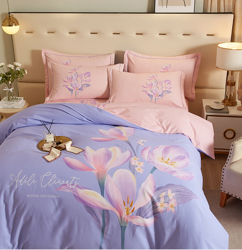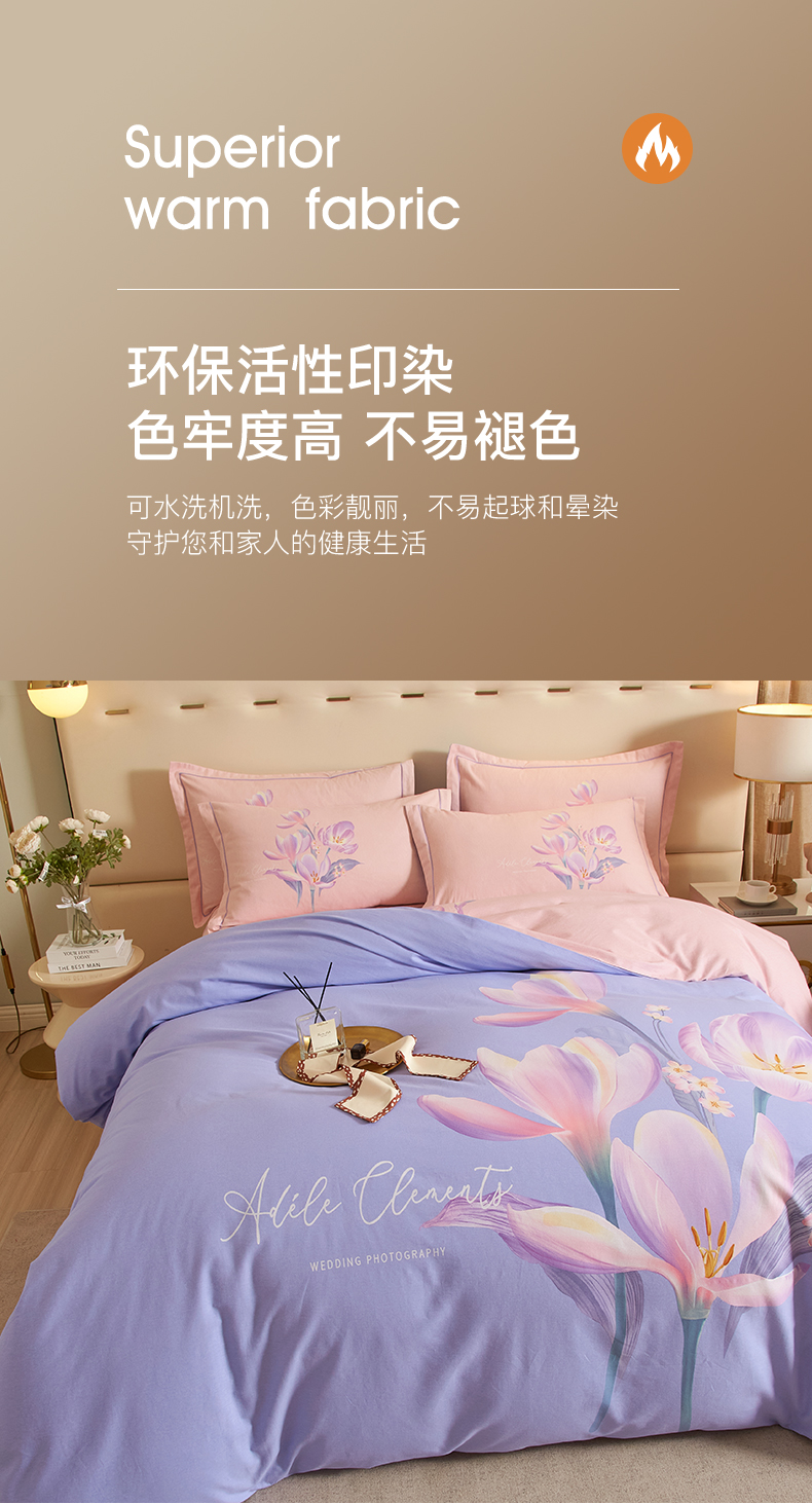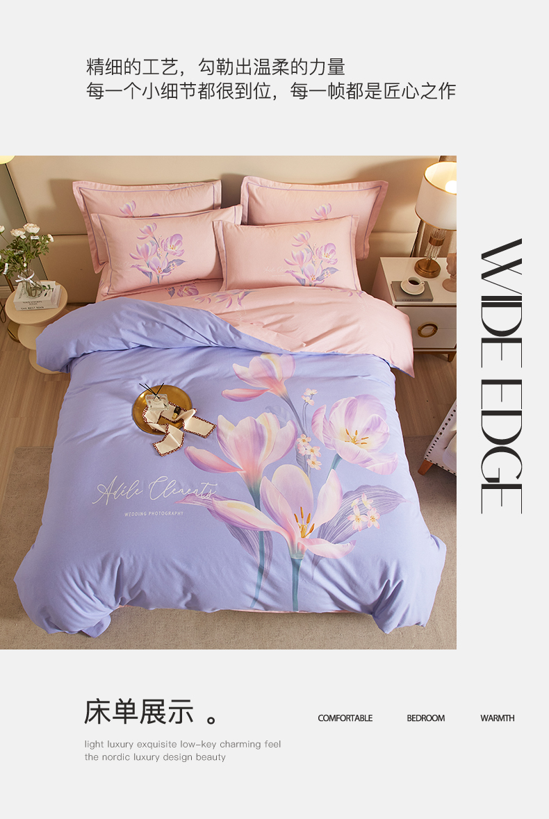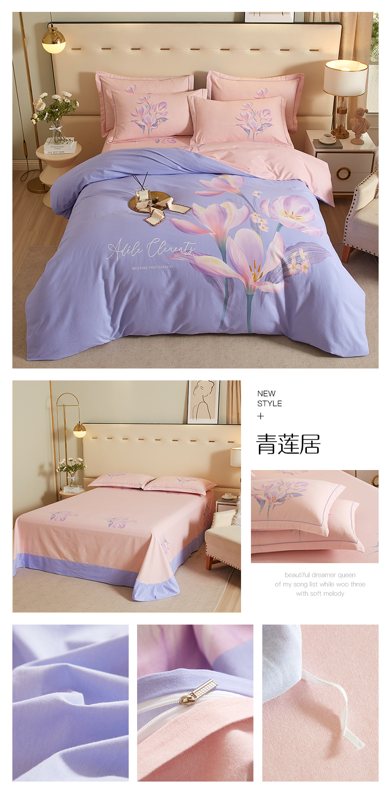 商品名称:格里芬家纺2025新款全棉大版磨毛生态磨毛四件套 青莲居