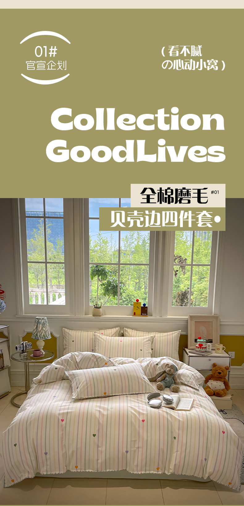 当前位置: 91家纺网 > 商品网购 > 床品套件 > 四件套 > 全棉普通四件套 > 蓝邻家纺 2025新款全棉纯棉加厚磨毛多巴胺贝壳边四件套 弦音