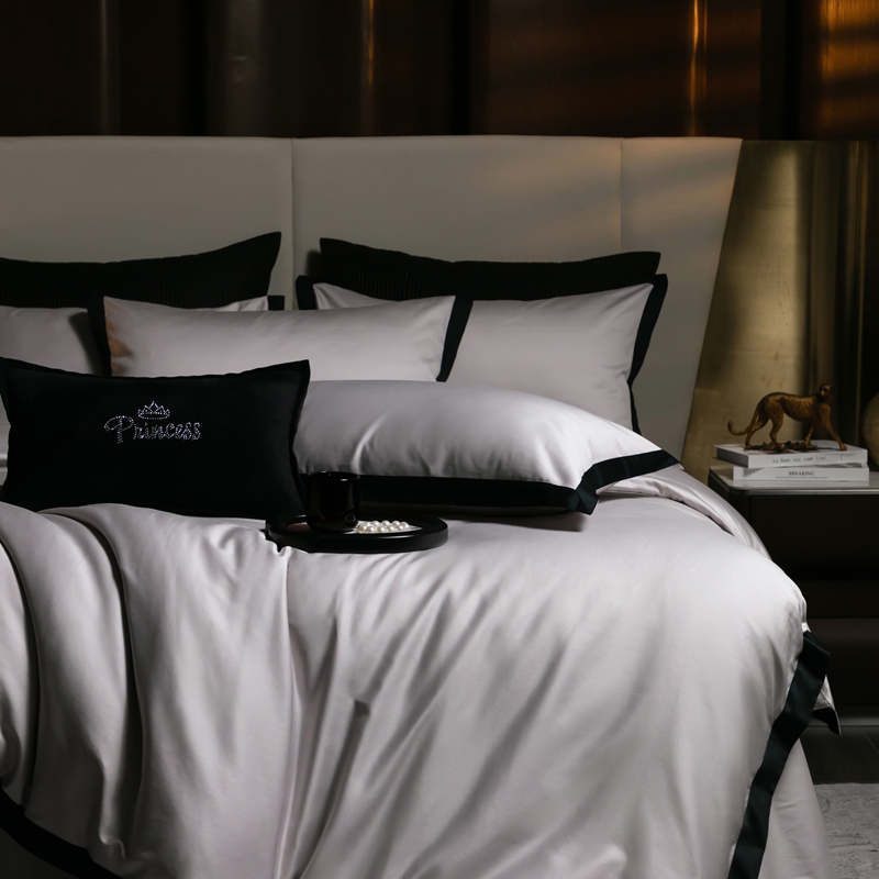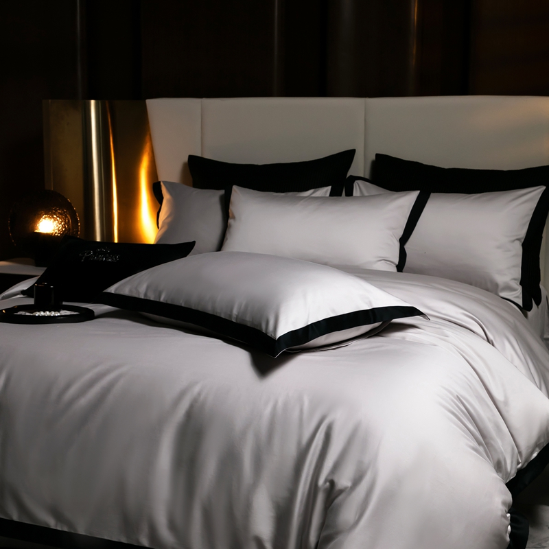 佳汐蓝家纺 2025新款亲肤舒适100支长绒棉小拼角四件套-轻奢 轻奢-雾焦灰