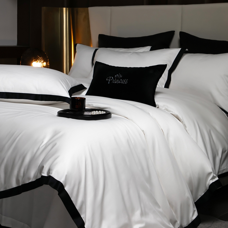 商品名称:佳汐蓝家纺 2025新款亲肤舒适100支长绒棉小拼角四件套-轻奢 轻奢-雾焦灰