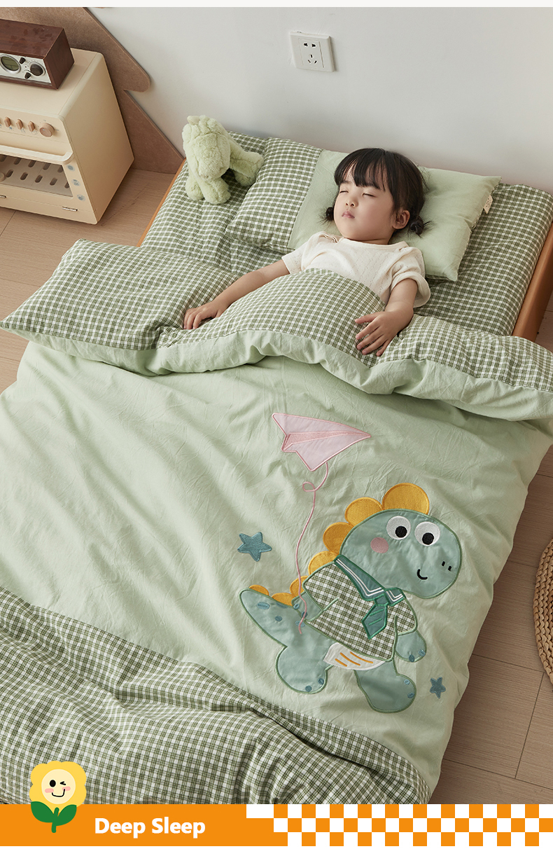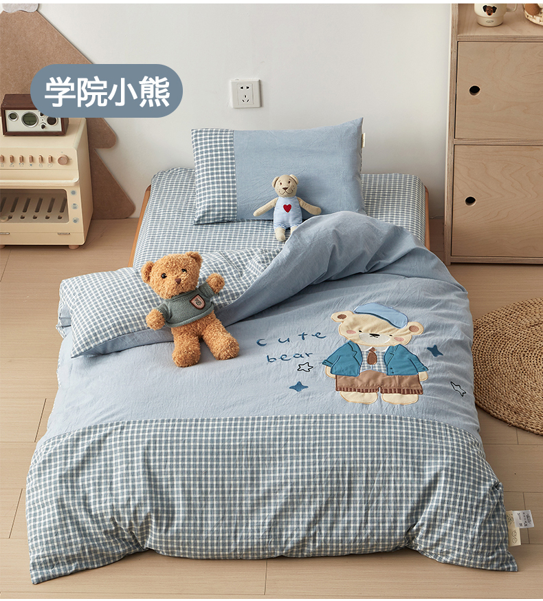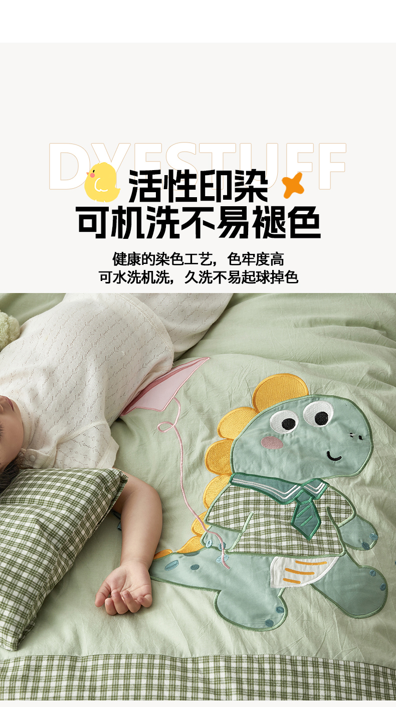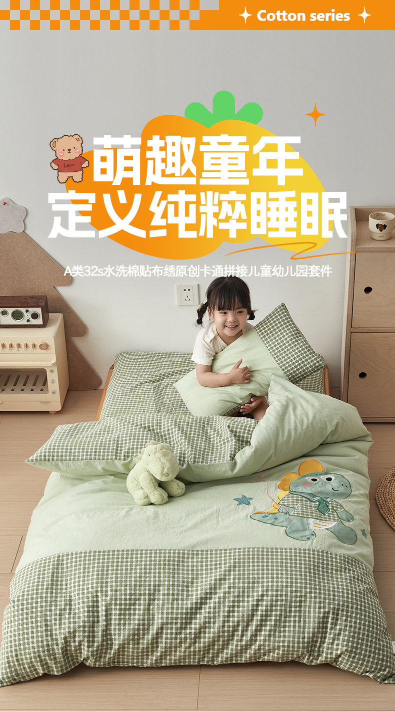 当前位置: 91家纺网 > 商品网购 > 床品套件 > 多件套 > 多件套 > 荷马之梦 2025新款学院系列—A类32s水洗棉贴布绣原创卡通拼接儿童幼儿园套件星球鸭