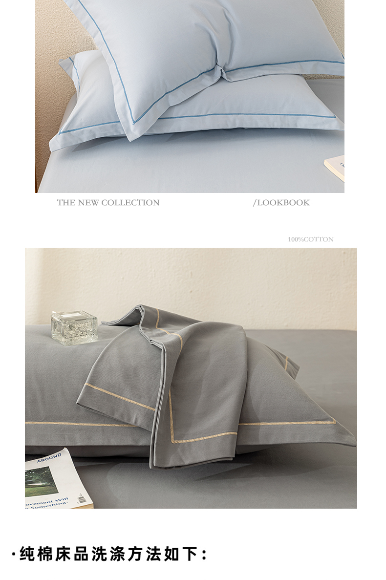 (总)百寐 2023轻奢60支锦棉刺绣夹棉床盖款四件套纯色一字绣,宾利蓝,豆沙红,果子青,气质黄,神秘灰,仙草绿