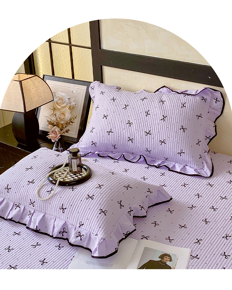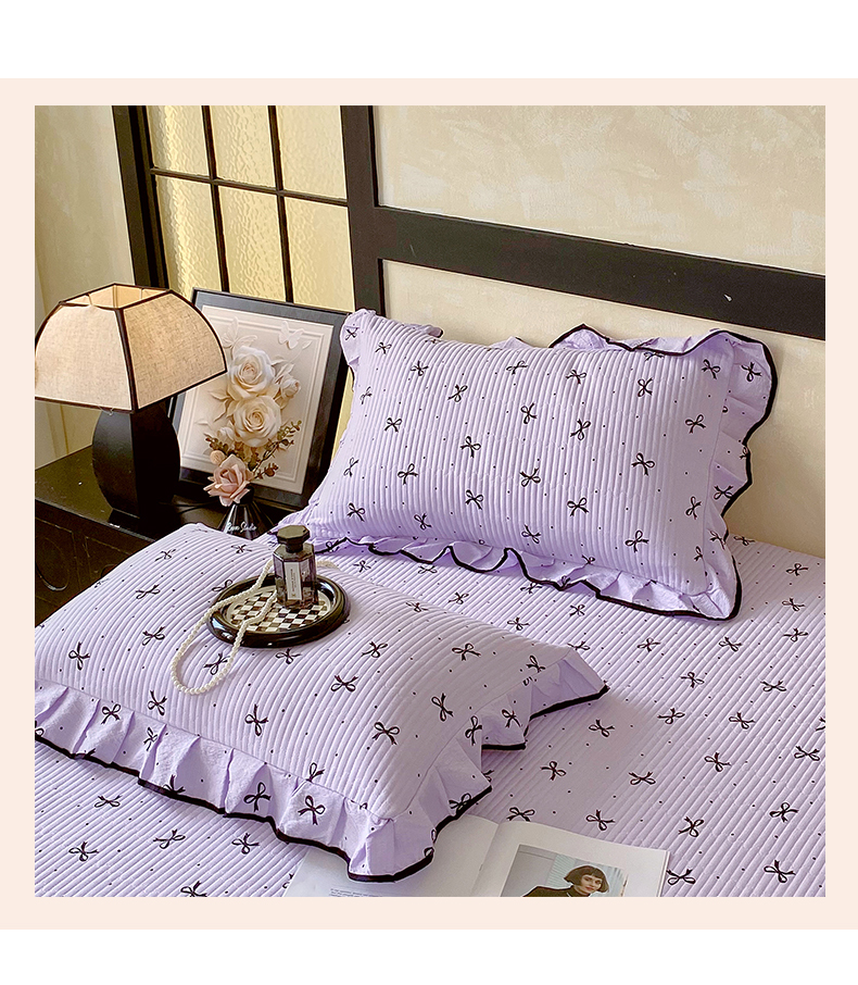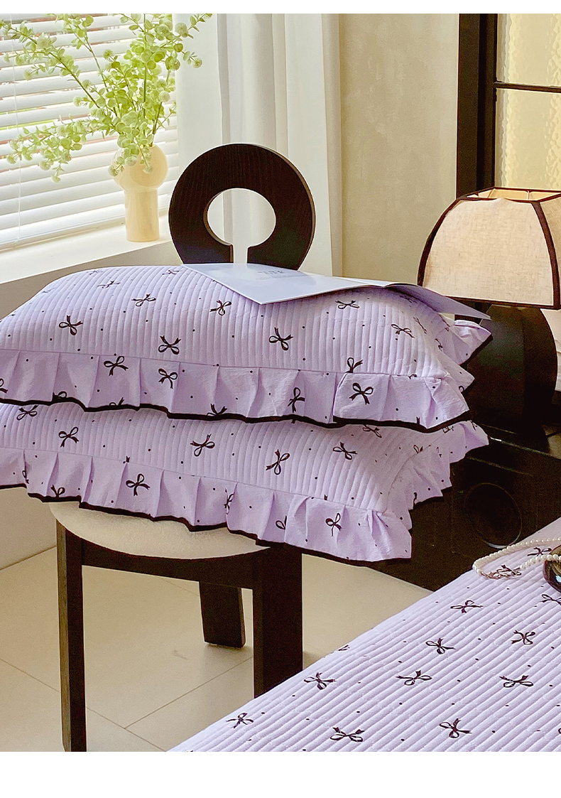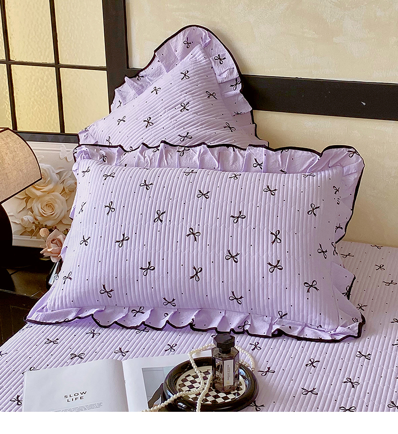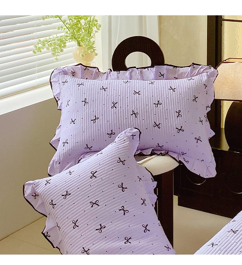 商品名称:雨彤家纺 2025新款A类云感公主风双层纱印花夹棉花边款枕套 蝴蝶可颂-公主风