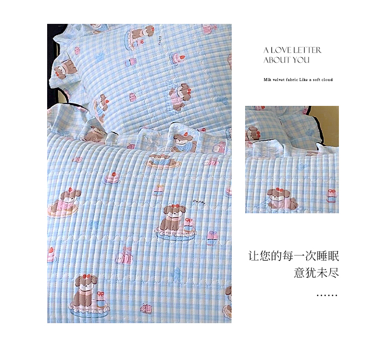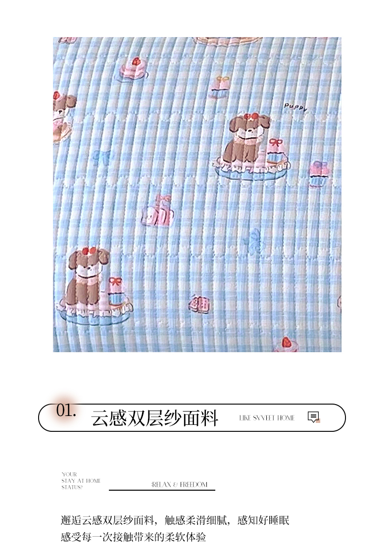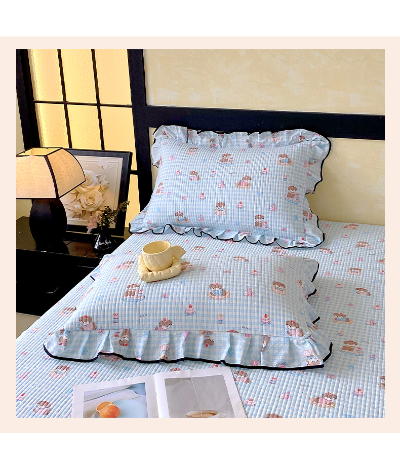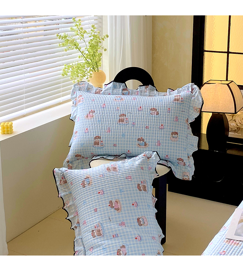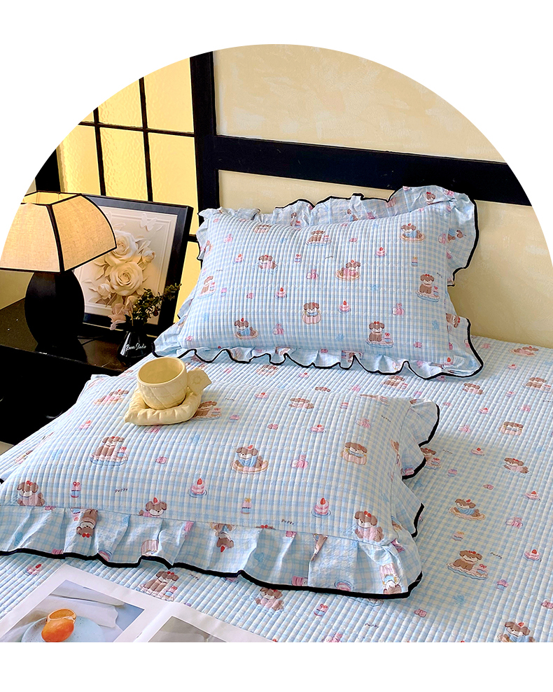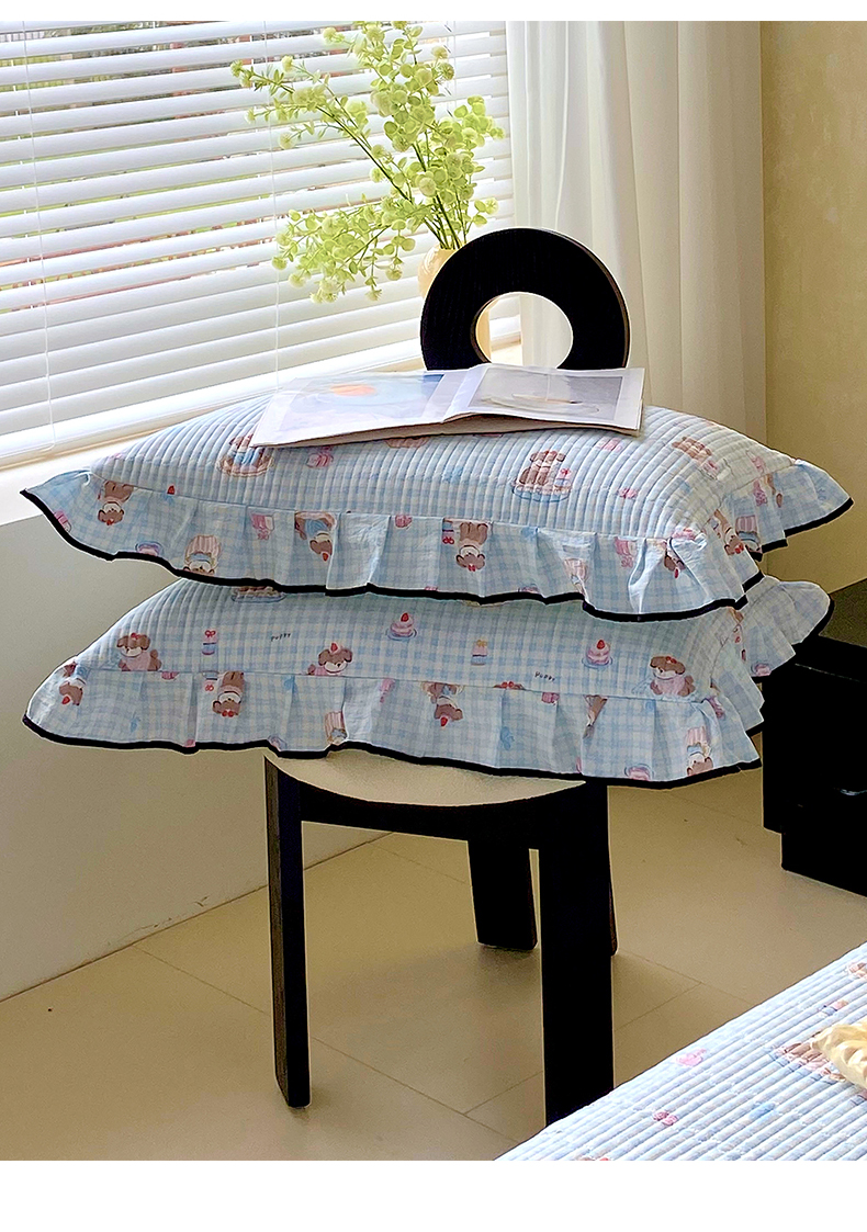 商品名称:雨彤家纺 2025新款A类云感公主风双层纱印花夹棉花边款枕套 淘气狗-公主风