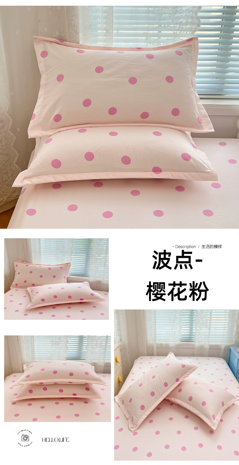 商品名称:圣比熊 2025新款双层纱枕套宿舍学生单只枕芯套枕头内胆套一对装-缤纷波点 波点-樱花粉
