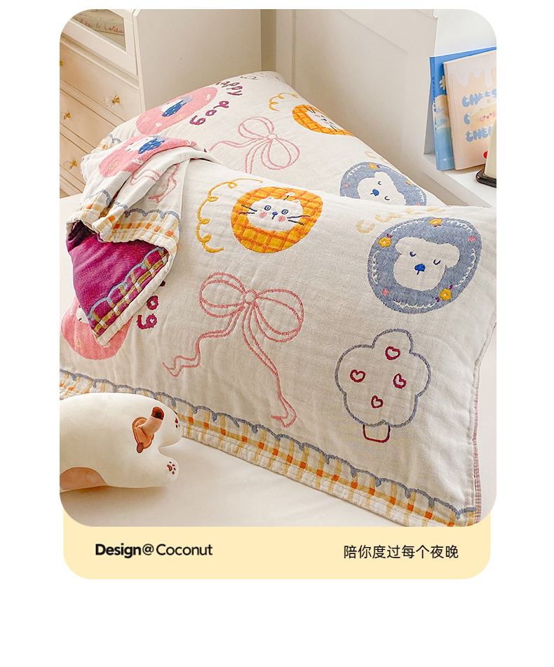(总)美宜家 2026新款全棉细纱加厚萌系治愈风枕巾,条纹蘑菇一只,伙伴一只,萌萌兔一只,绅士熊一只,童趣一只,小暖狗一只,条纹蘑菇一对,伙伴一对,萌萌兔一对,绅士熊一对,童趣一对,小暖狗一对