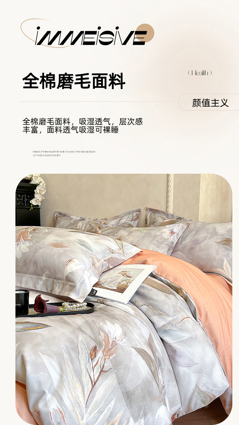 当前位置: 91家纺网 > 商品网购 > 床品套件 > 四件套 > 全棉普通四件套 > 禾时 2025新款全棉超柔数码印花磨毛四件套(32x21磨毛) 花期(咖)