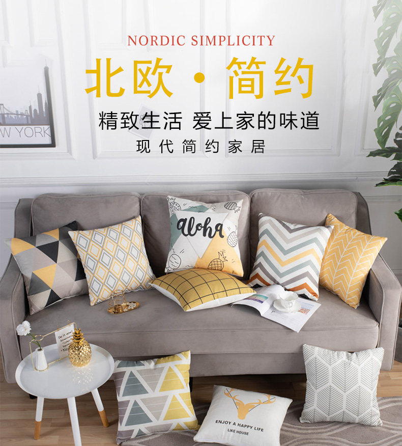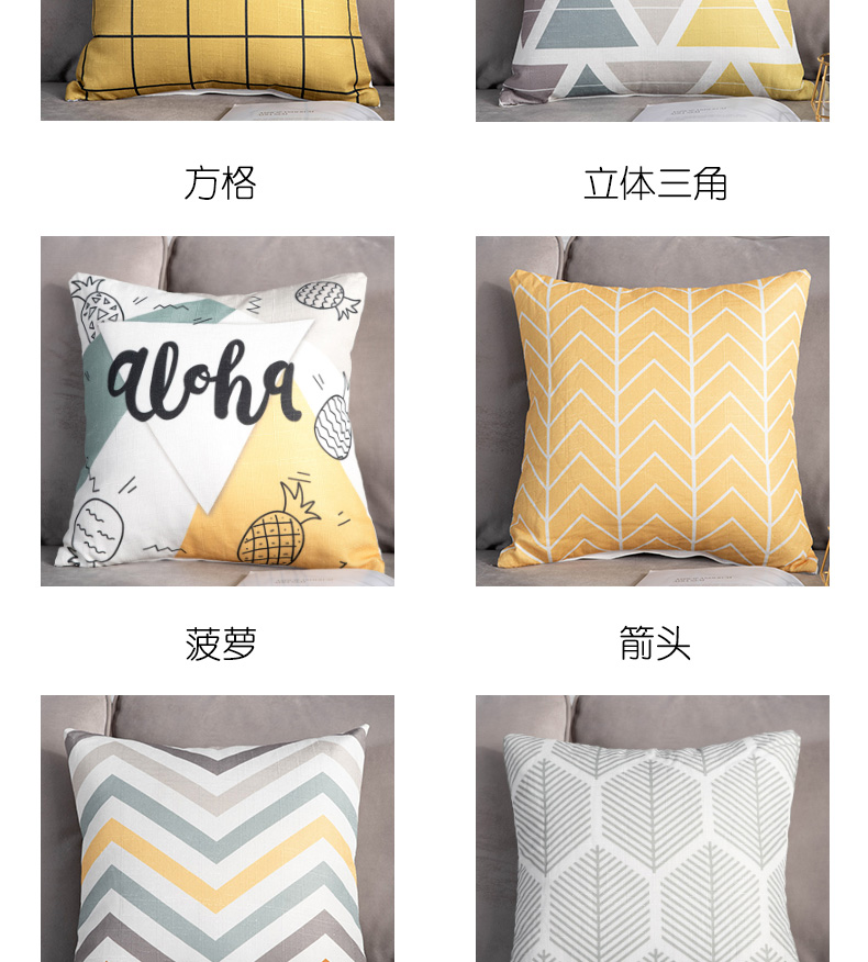(总)新奇异 2025新款竹节麻抱枕靠垫 (支持定制),组合图仅供展示,菠萝,彩色三角,方格,箭头,立体三角,菱形,鹿头,树叶,线条
