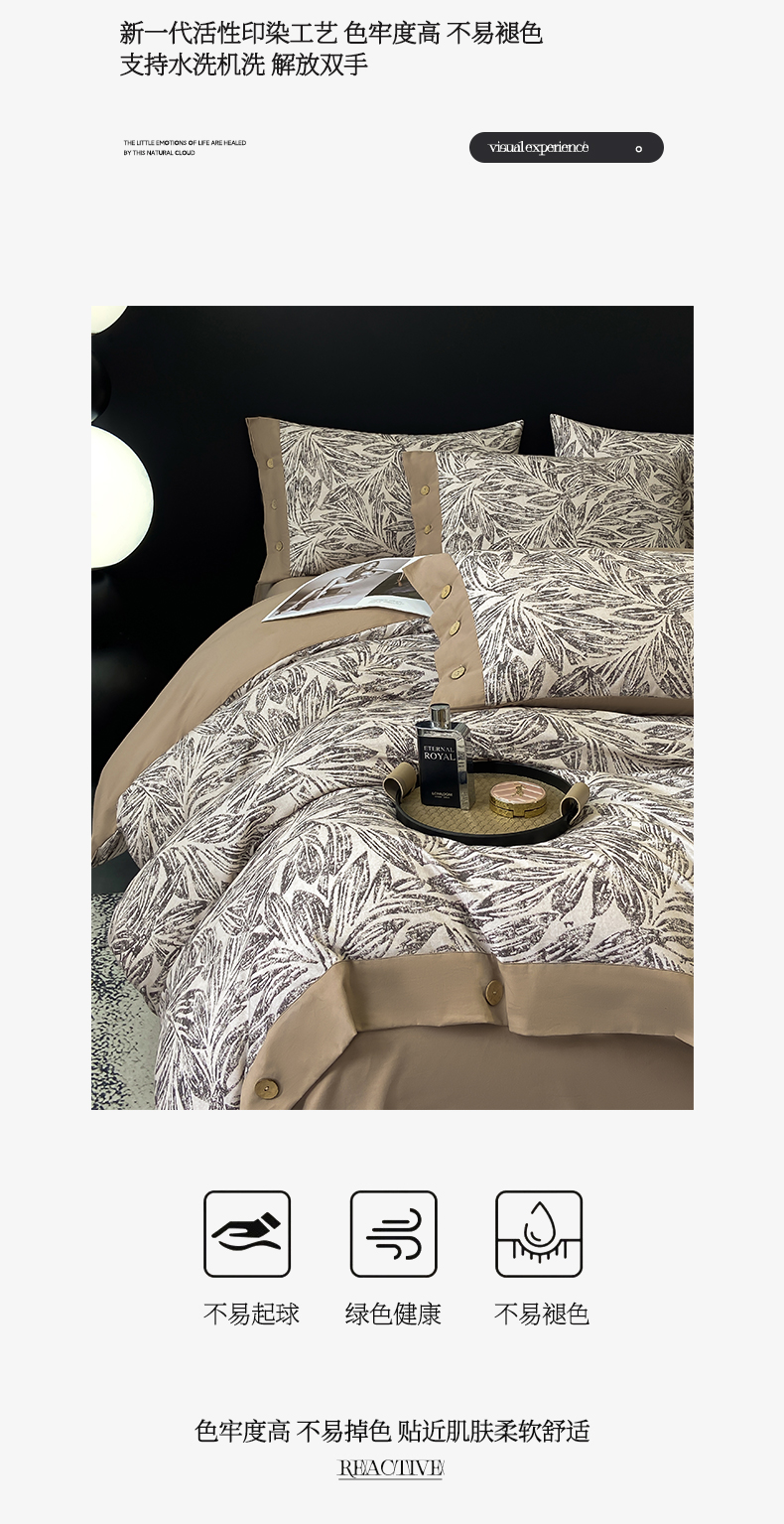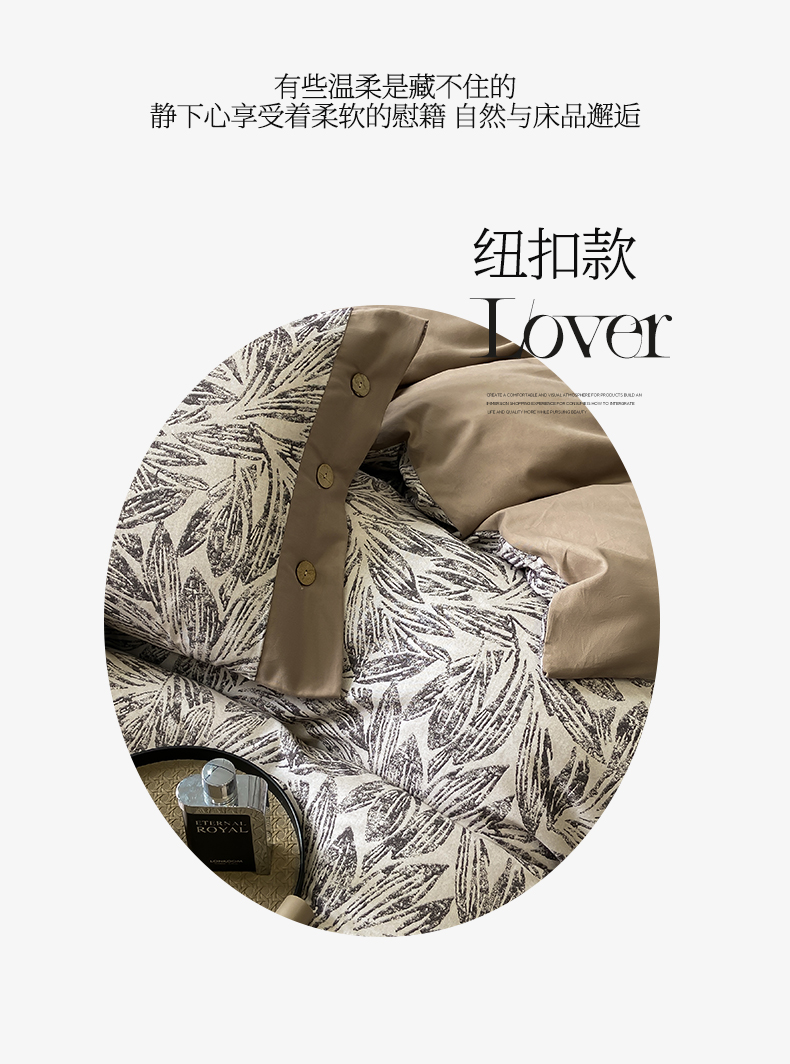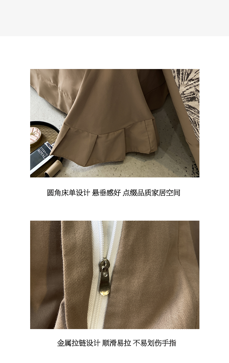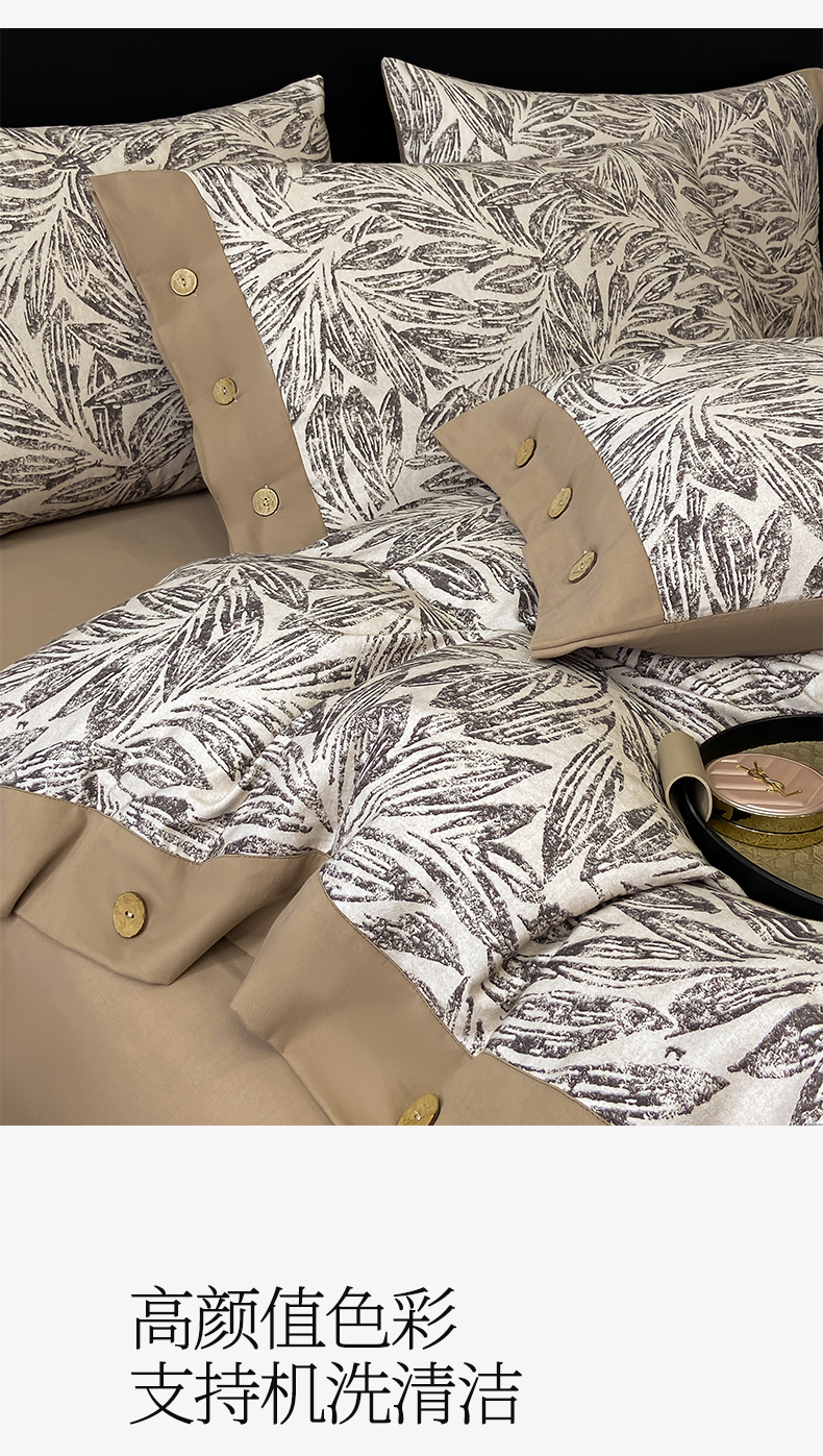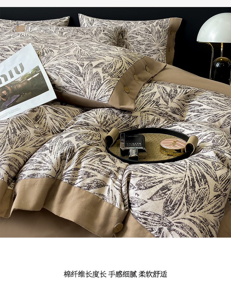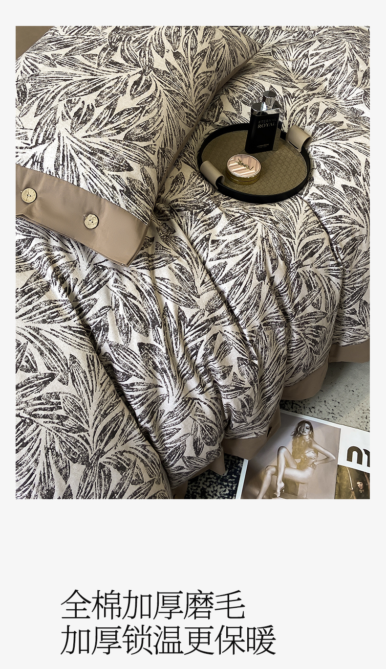 商品名称:慕希家纺 2025新款全棉纯棉轻奢加厚磨毛纽扣款四件套 雅集-咖