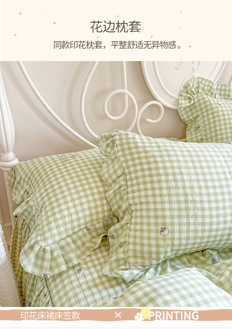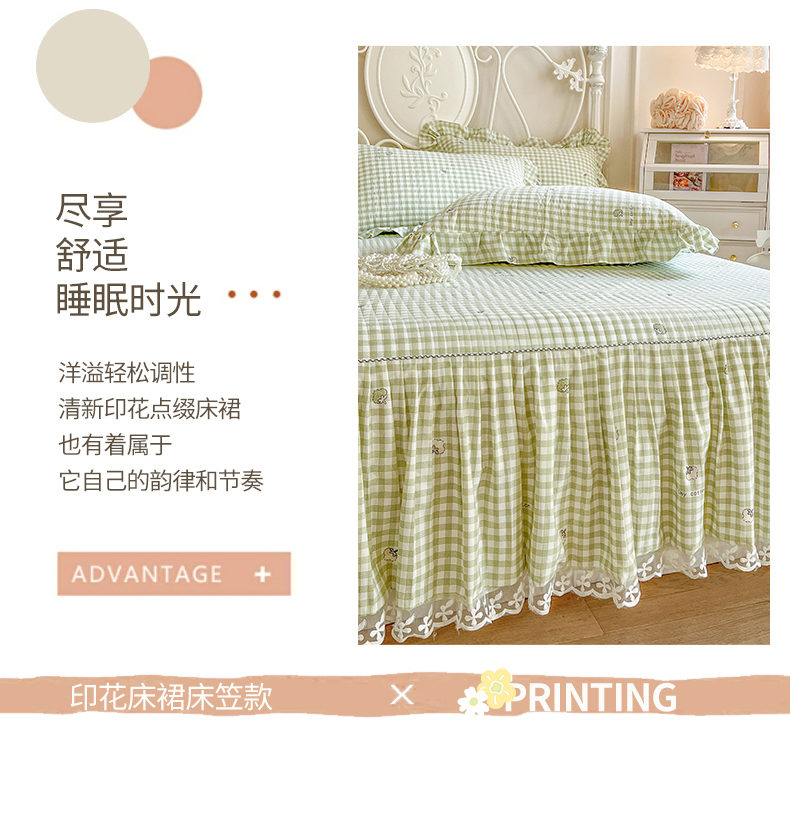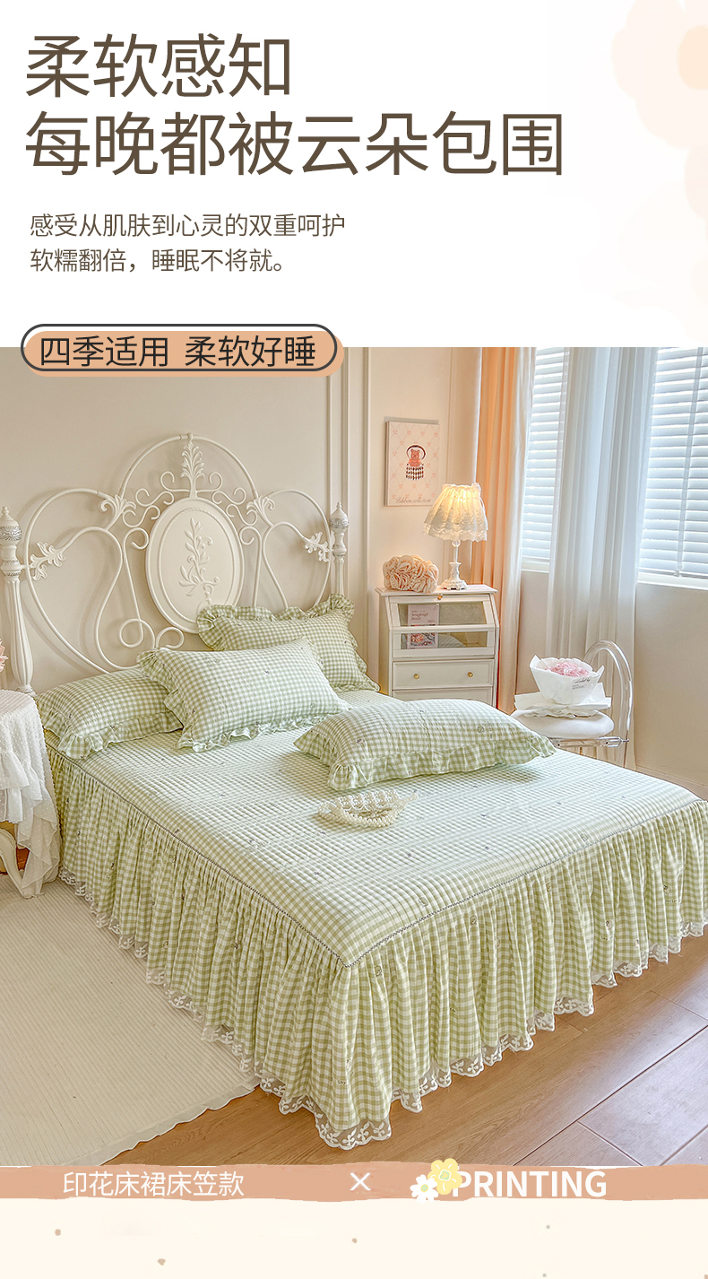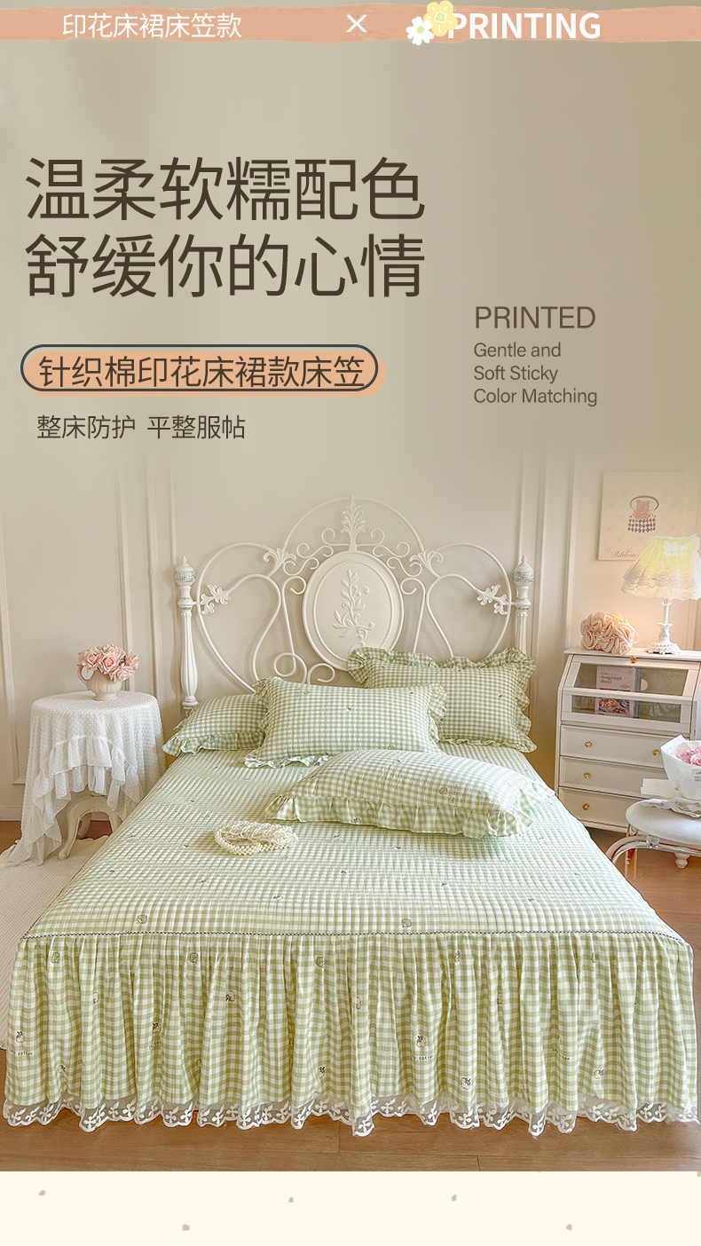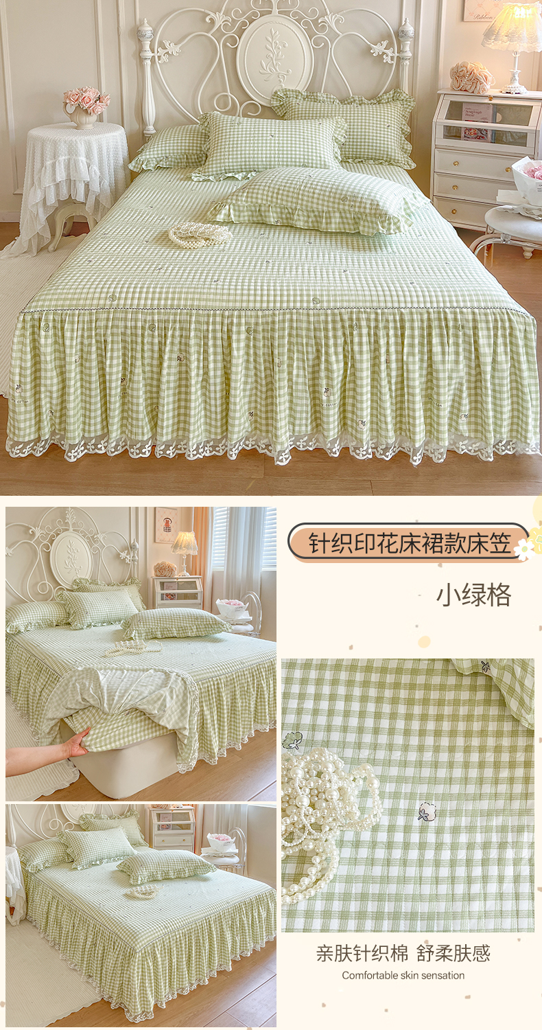 • 91家纺网 家纺一手货源 找家纺 网红馆2025新款针织印花单床裙 小绿格