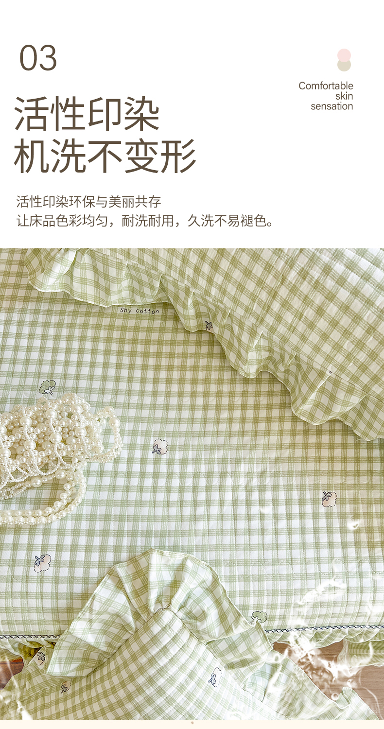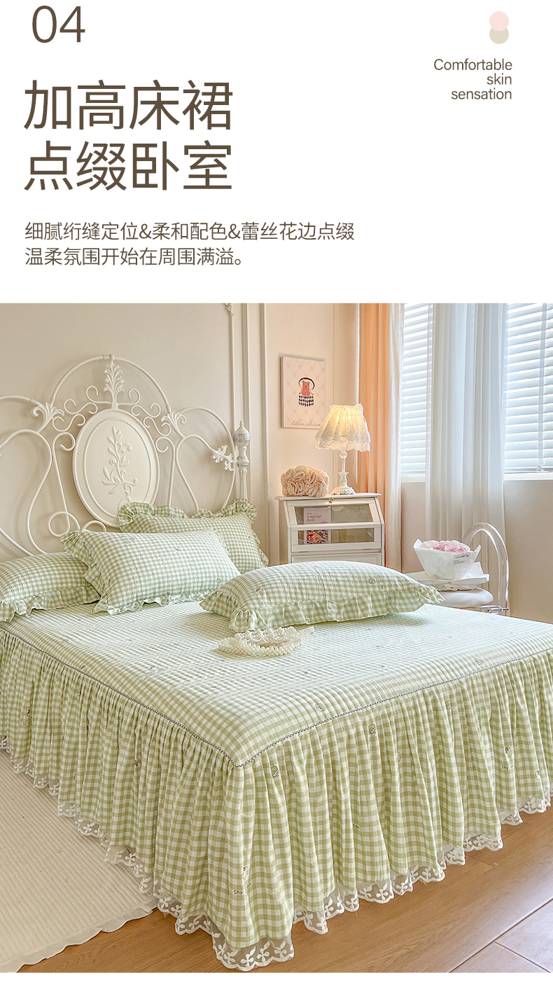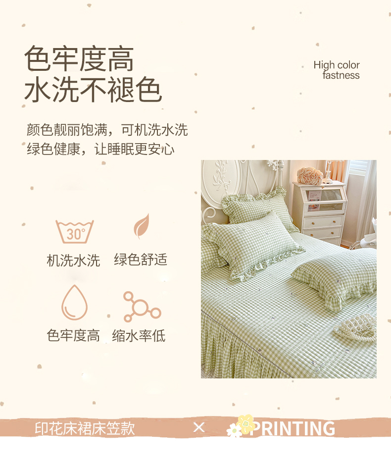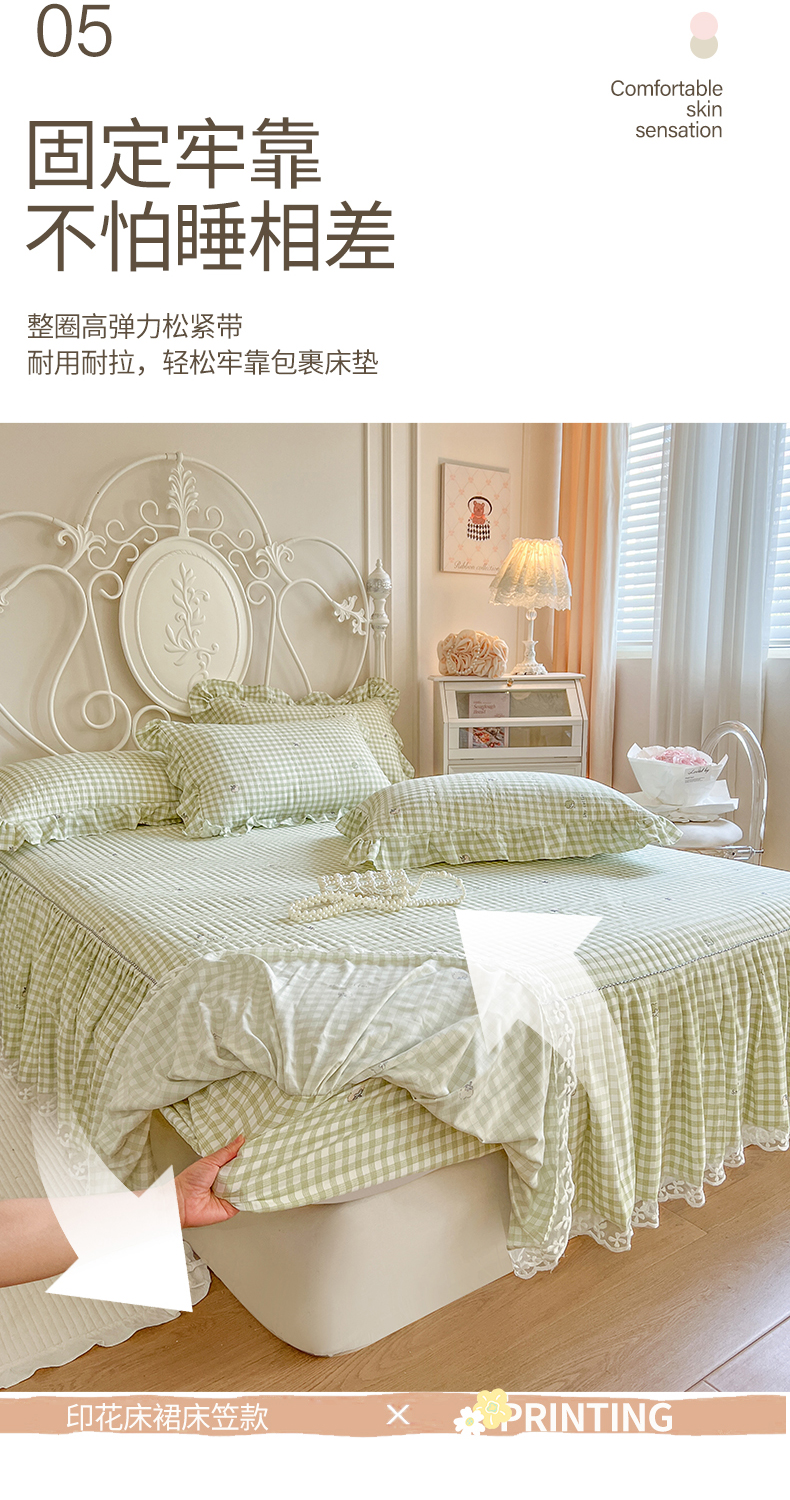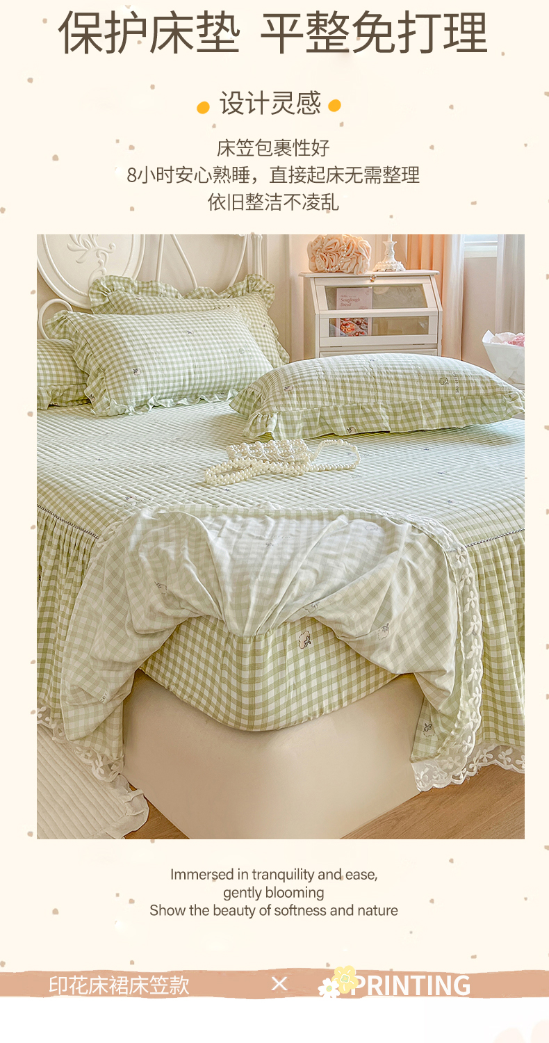 • 91家纺网 家纺一手货源 找家纺 网红馆2025新款针织印花单床裙 小绿格