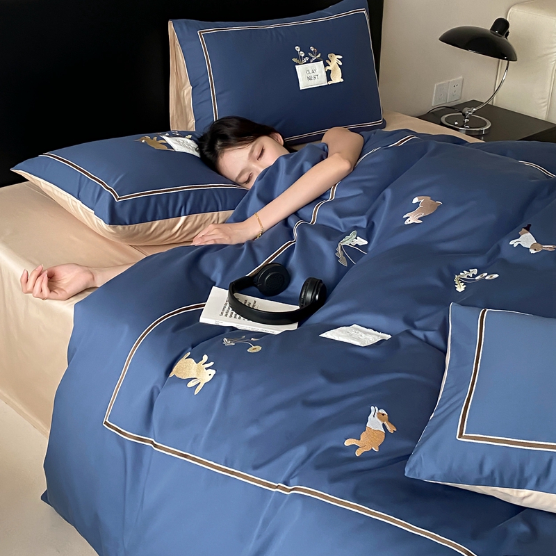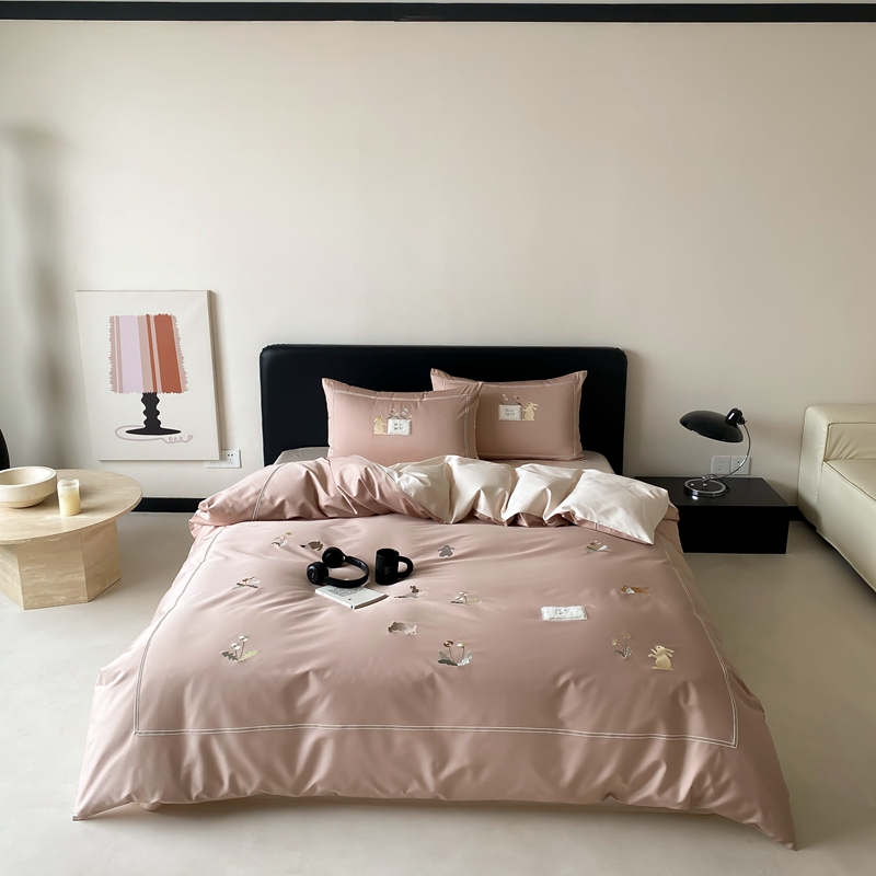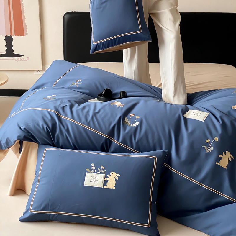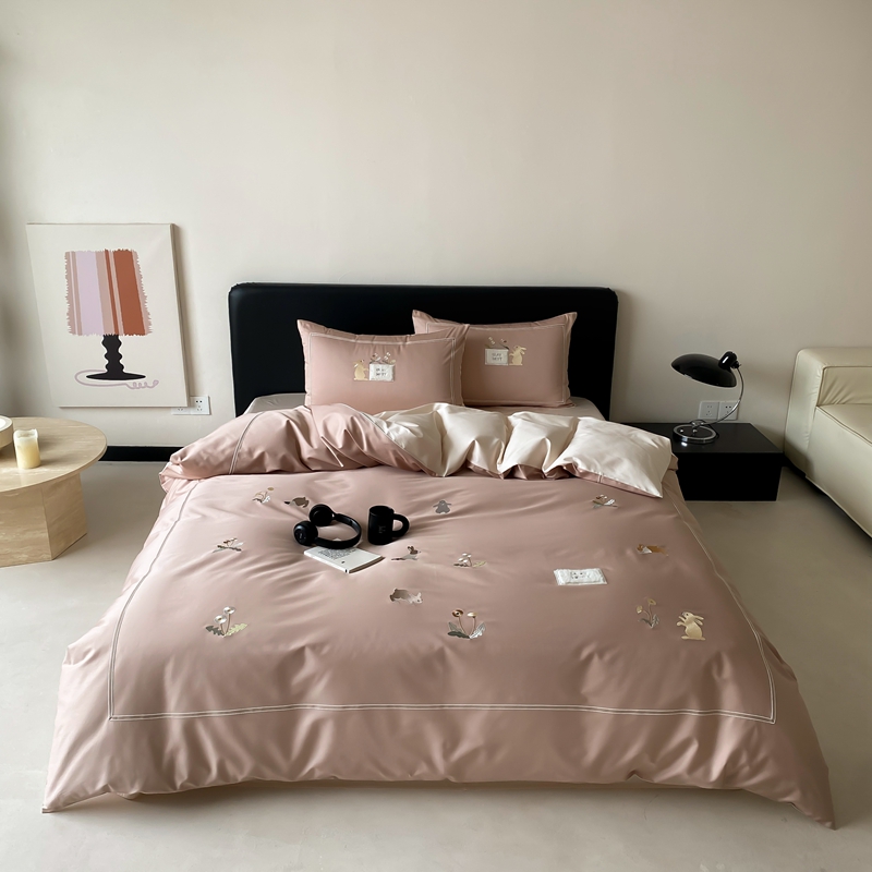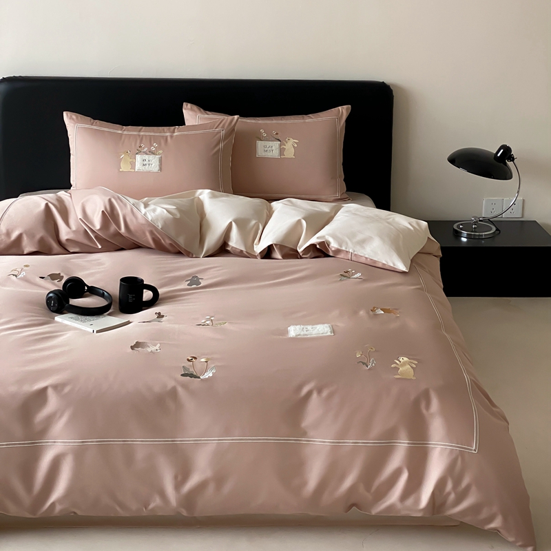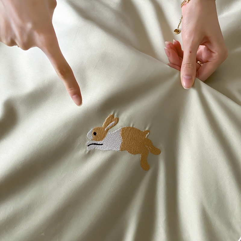 商品名称:(总)初拾 2025新款100s全棉纯棉治愈系绣花四件套-雏菊兔