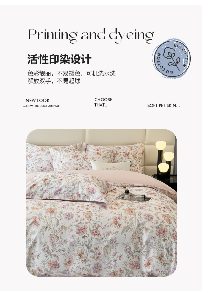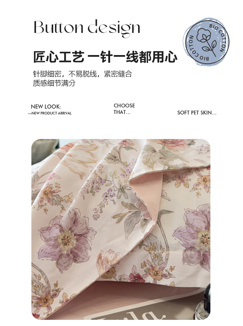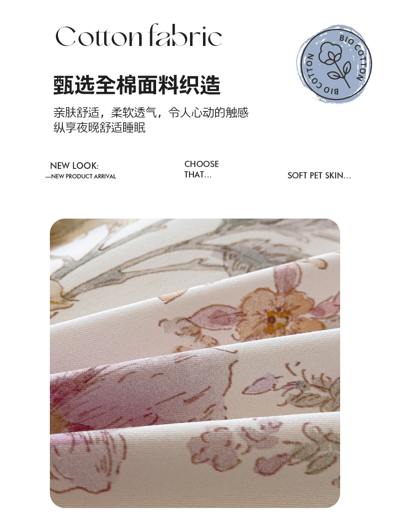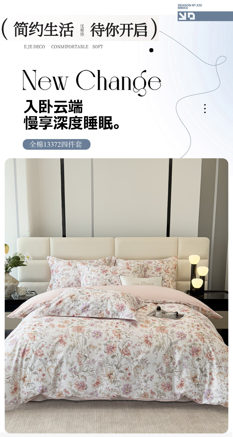 商品名称:洺兰家居 2025新款高支高密轻奢数码印花四件套长绒棉纯棉四件套 锦予-粉