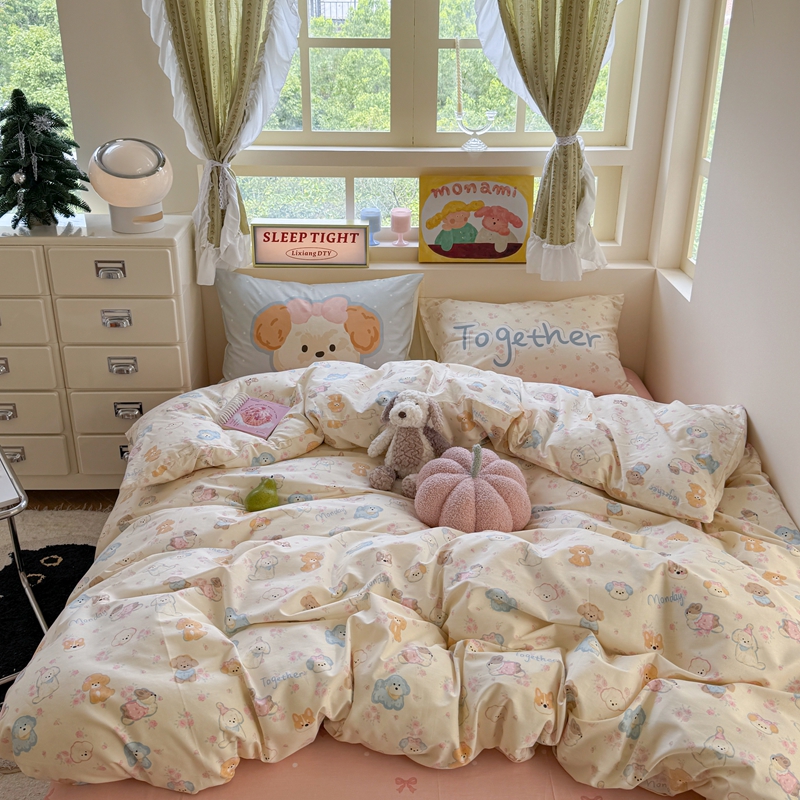 当前位置: 91家纺网 > 商品网购 > 床品套件 > 四件套 > 全棉普通四件套 > 觅糖家纺 2025新款开学季40支13370全棉纯棉斜纹四件套 爱心小熊