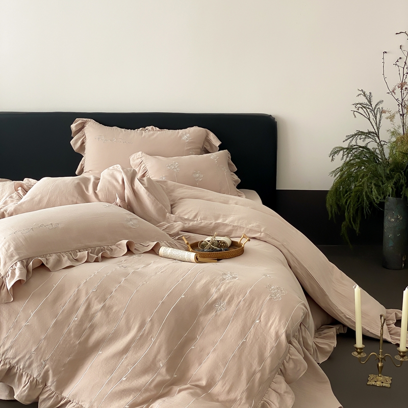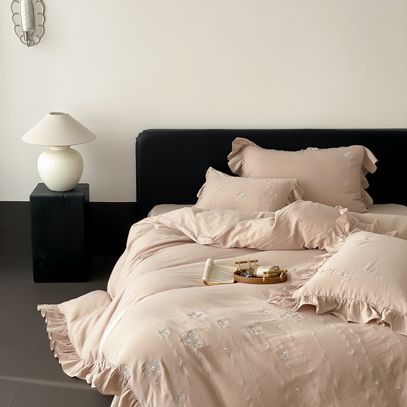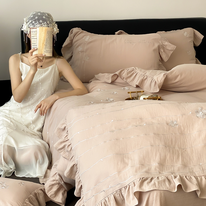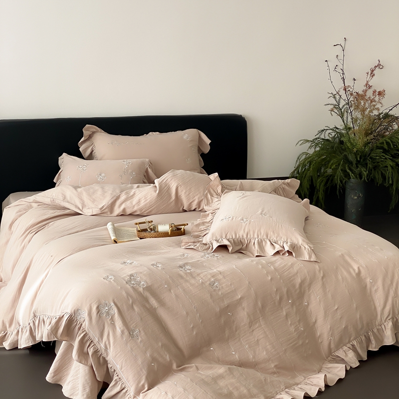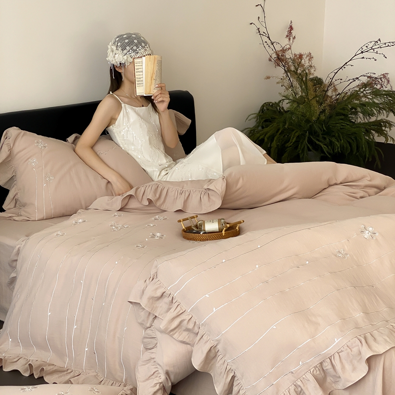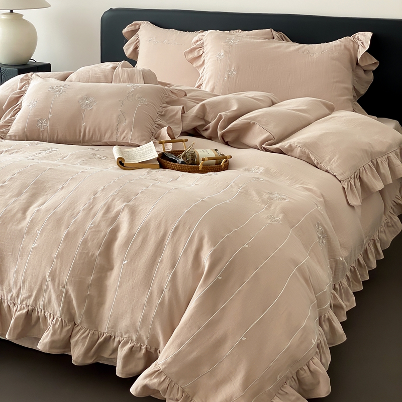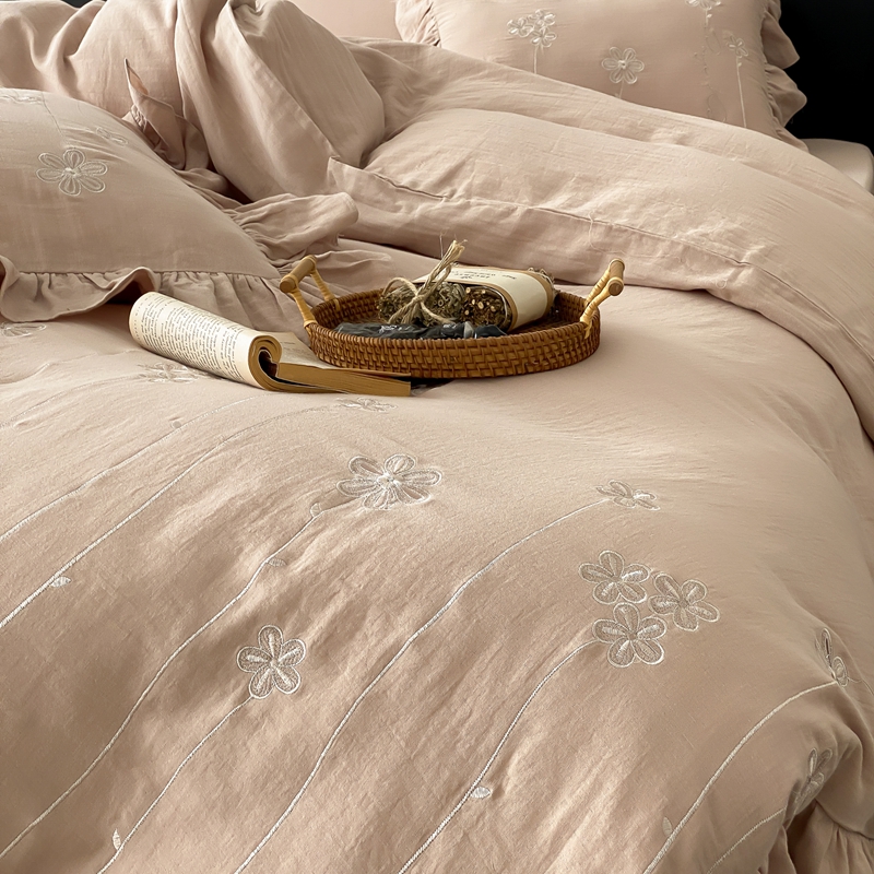 曼布缇2025新款A类全棉双层纱绣花款四件套-花予(券后控价:338/358起 会员减20) 花予-复古棕