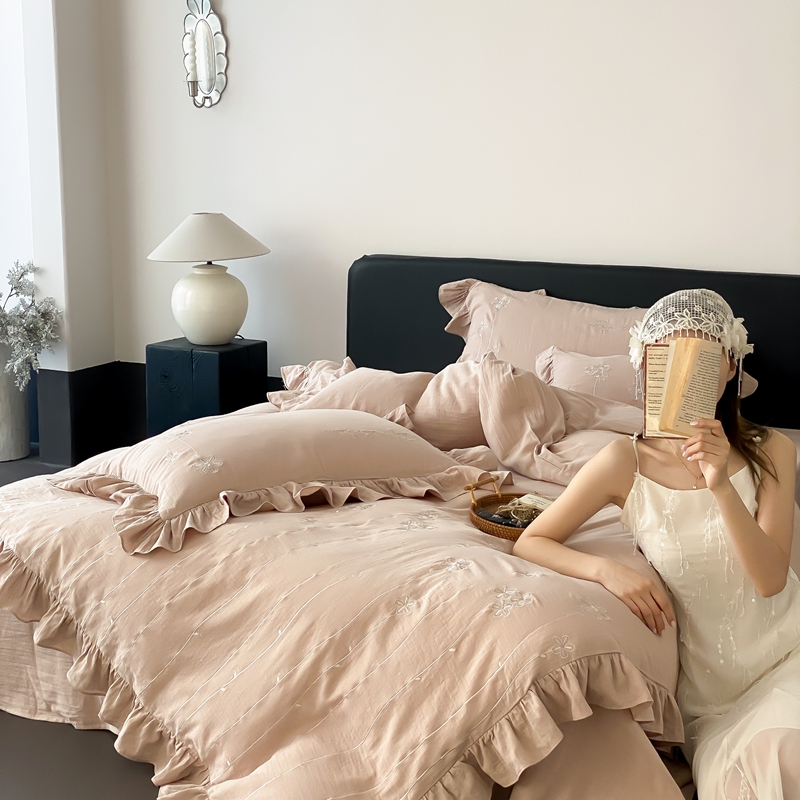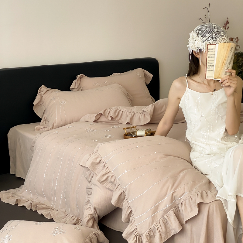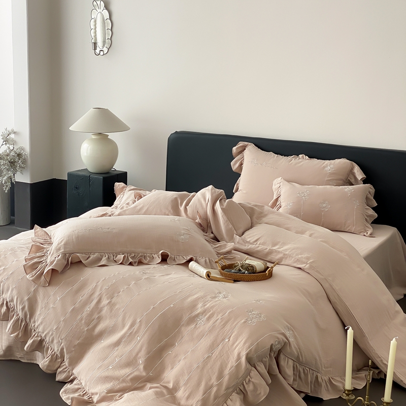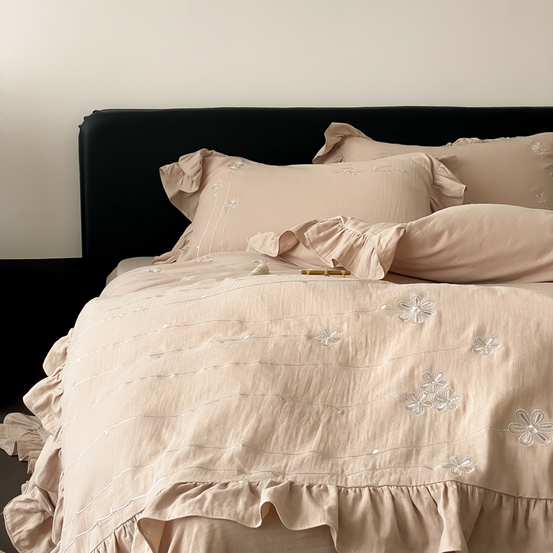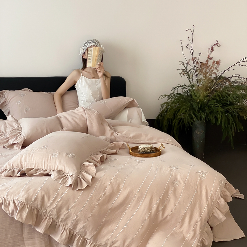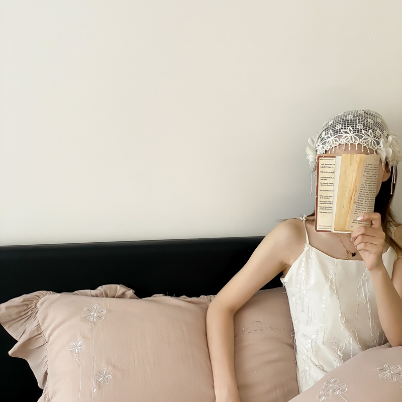 曼布缇2025新款A类全棉双层纱绣花款四件套-花予(券后控价:338/358起 会员减20) 花予-复古棕