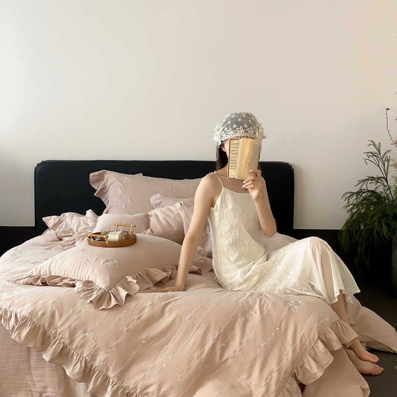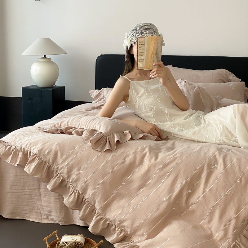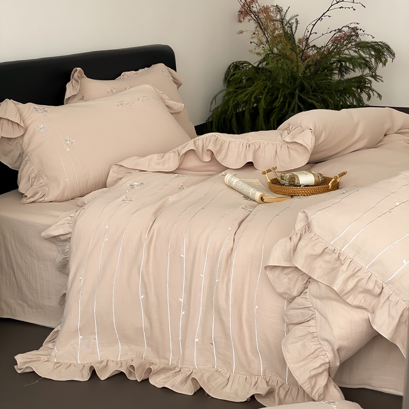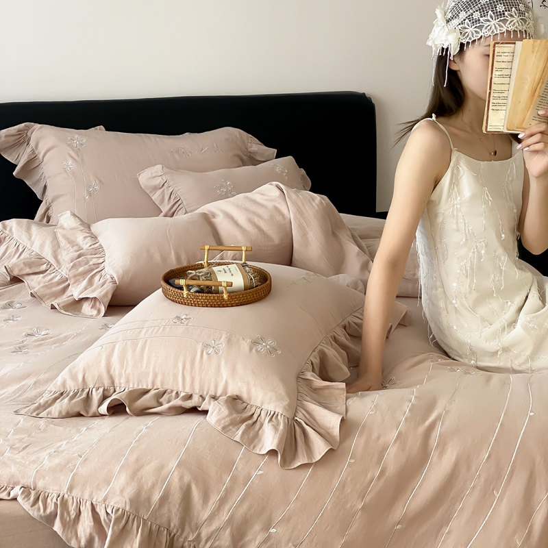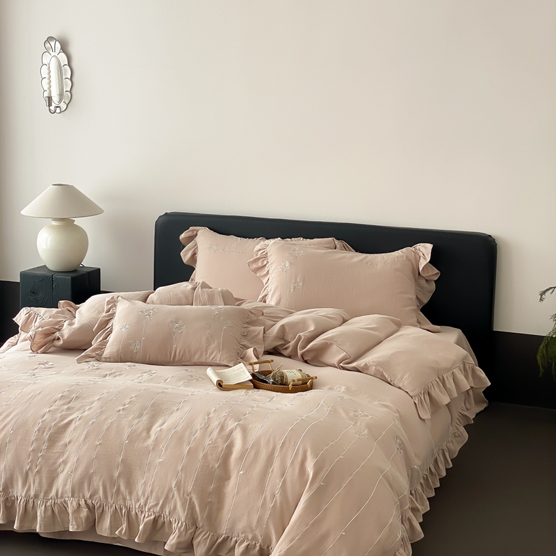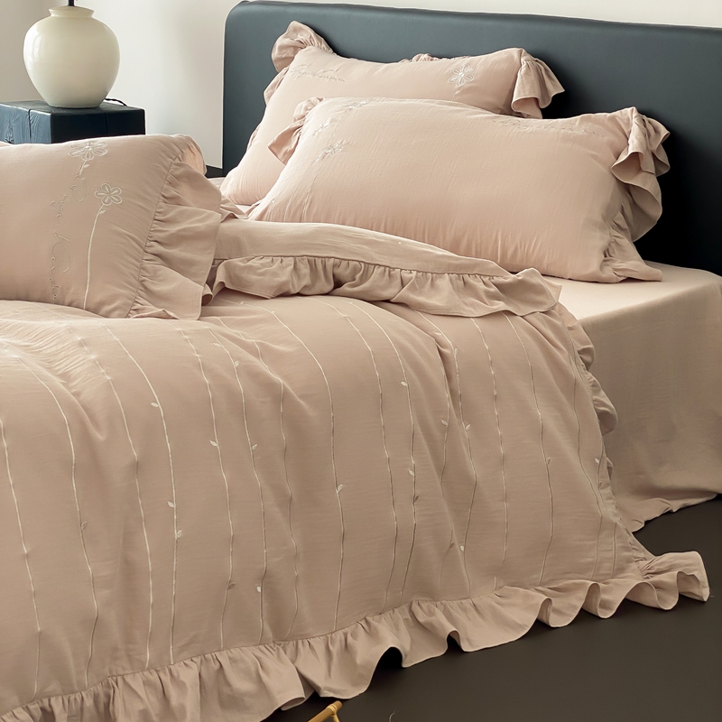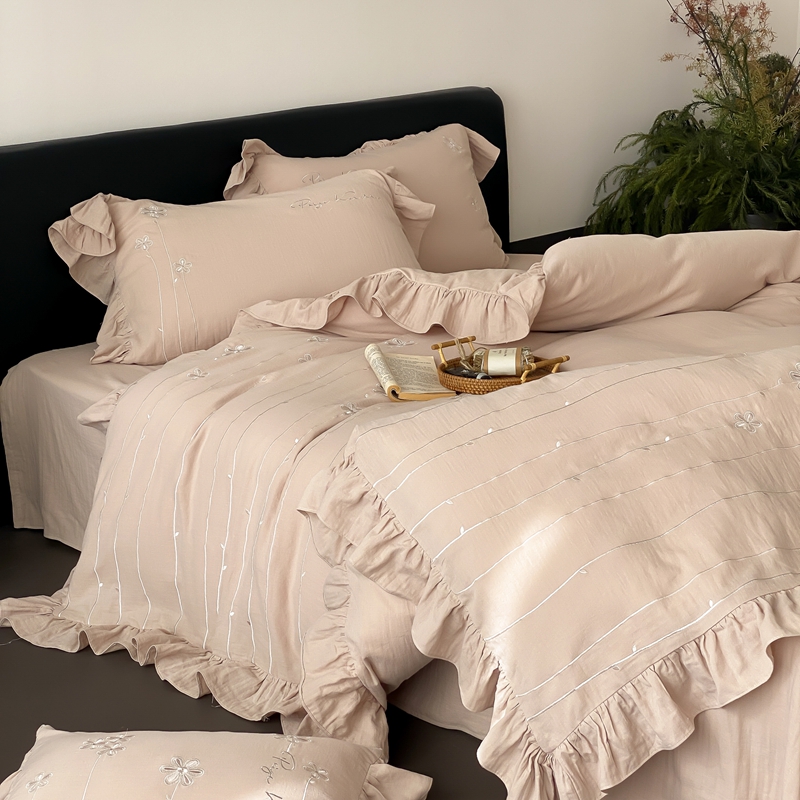 曼布缇2025新款A类全棉双层纱绣花款四件套-花予(券后控价:338/358起 会员减20) 花予-复古棕
