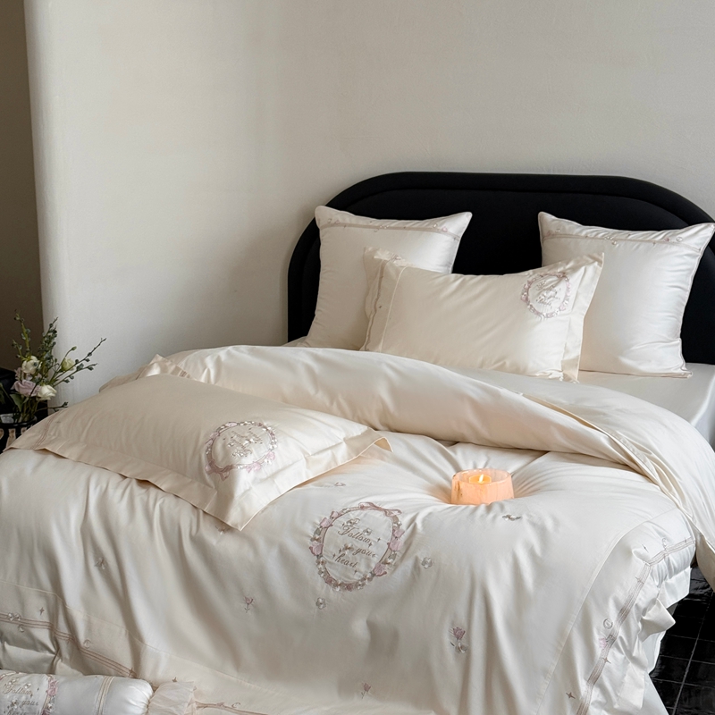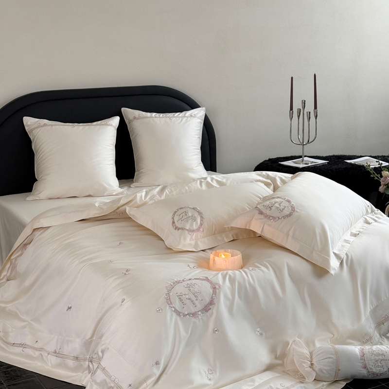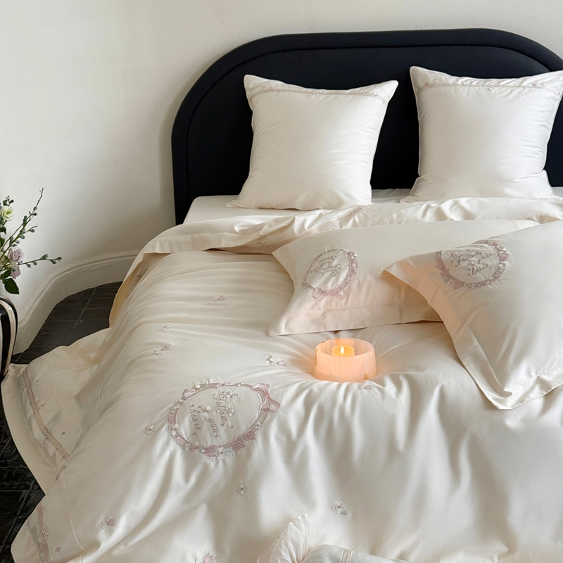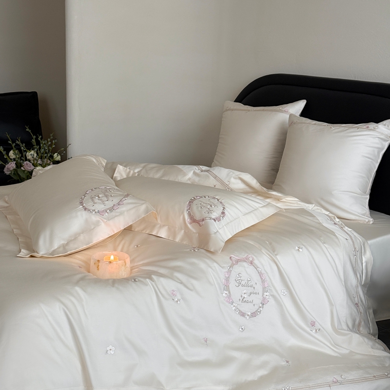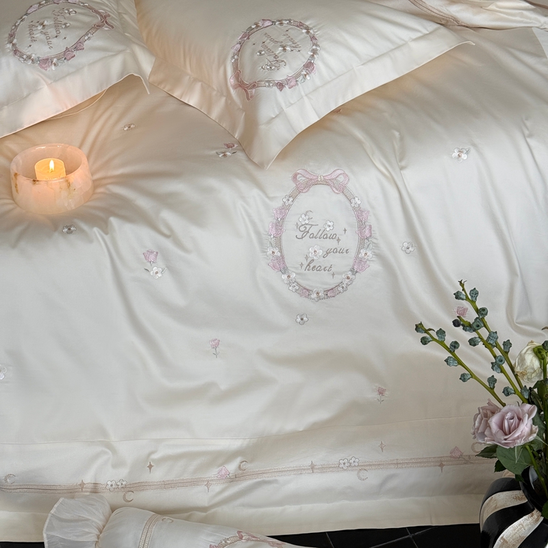 商品名称:鹿班家居2025新款秋冬100S长绒棉精密刺绣系列——浅梦落樱(标准会员-20) 白色