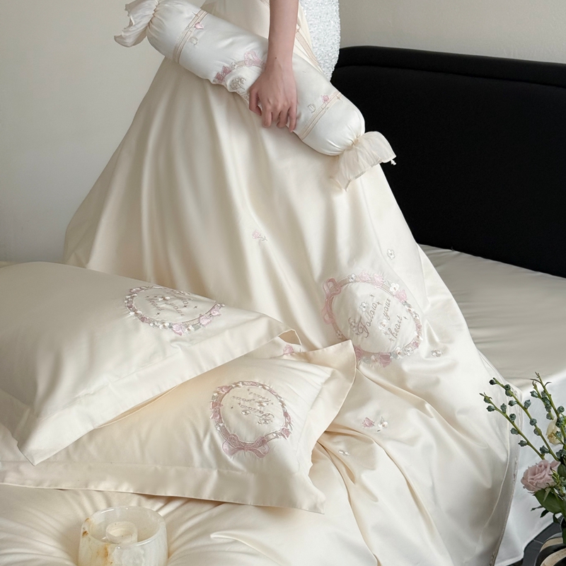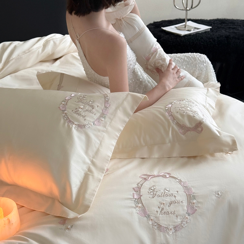 (总)鹿班 2024新款100支长绒棉精致刺绣四件套-情迷莫斯科 标准会员-20,情迷莫斯科-粉色,情迷莫斯科-黄柚色