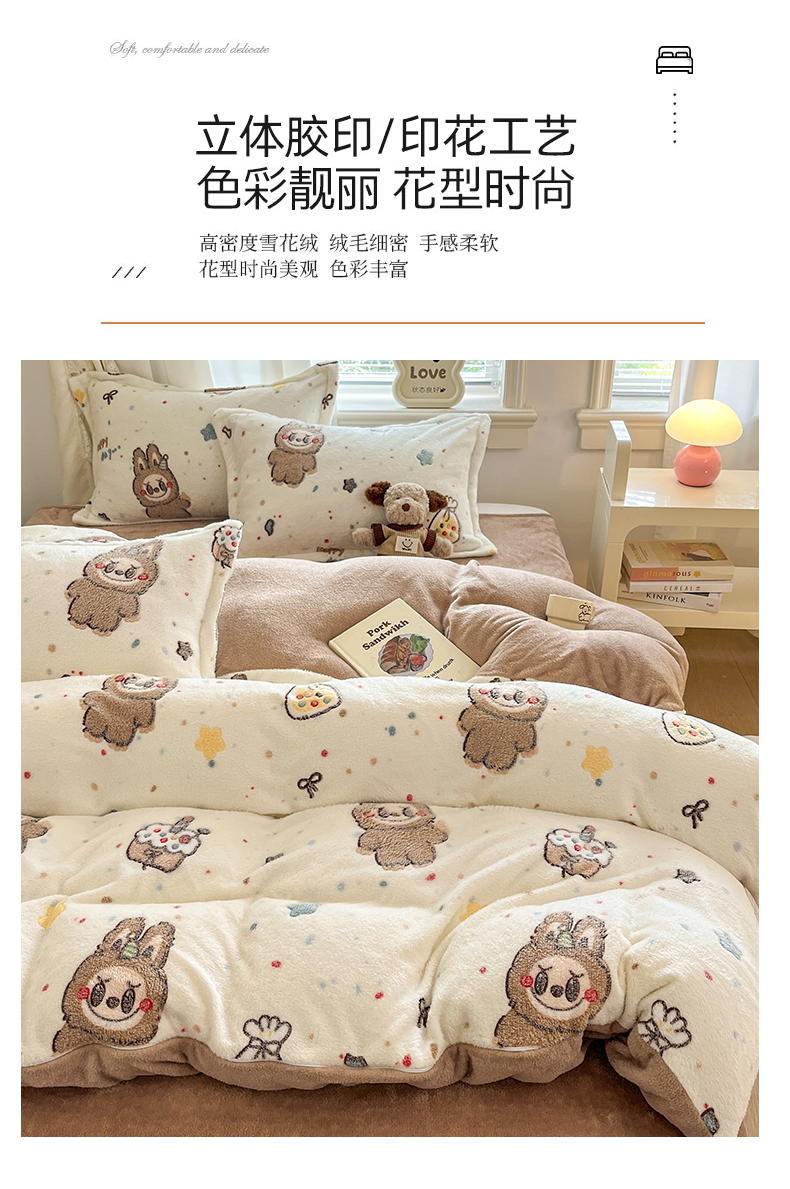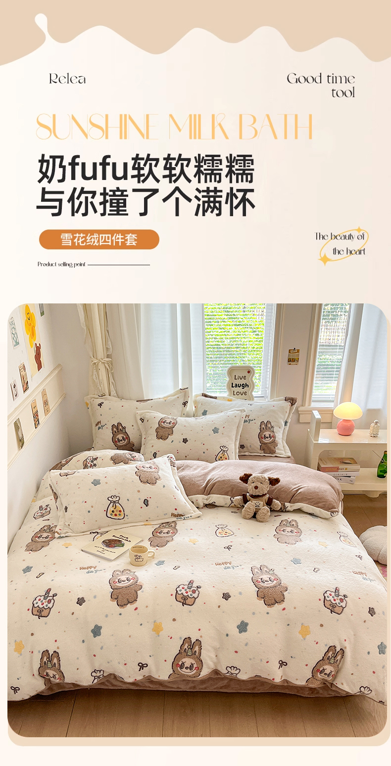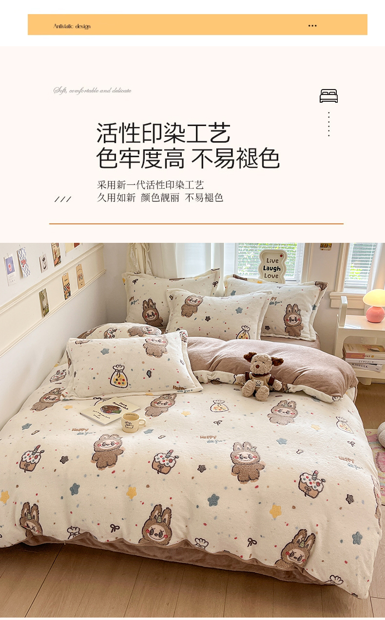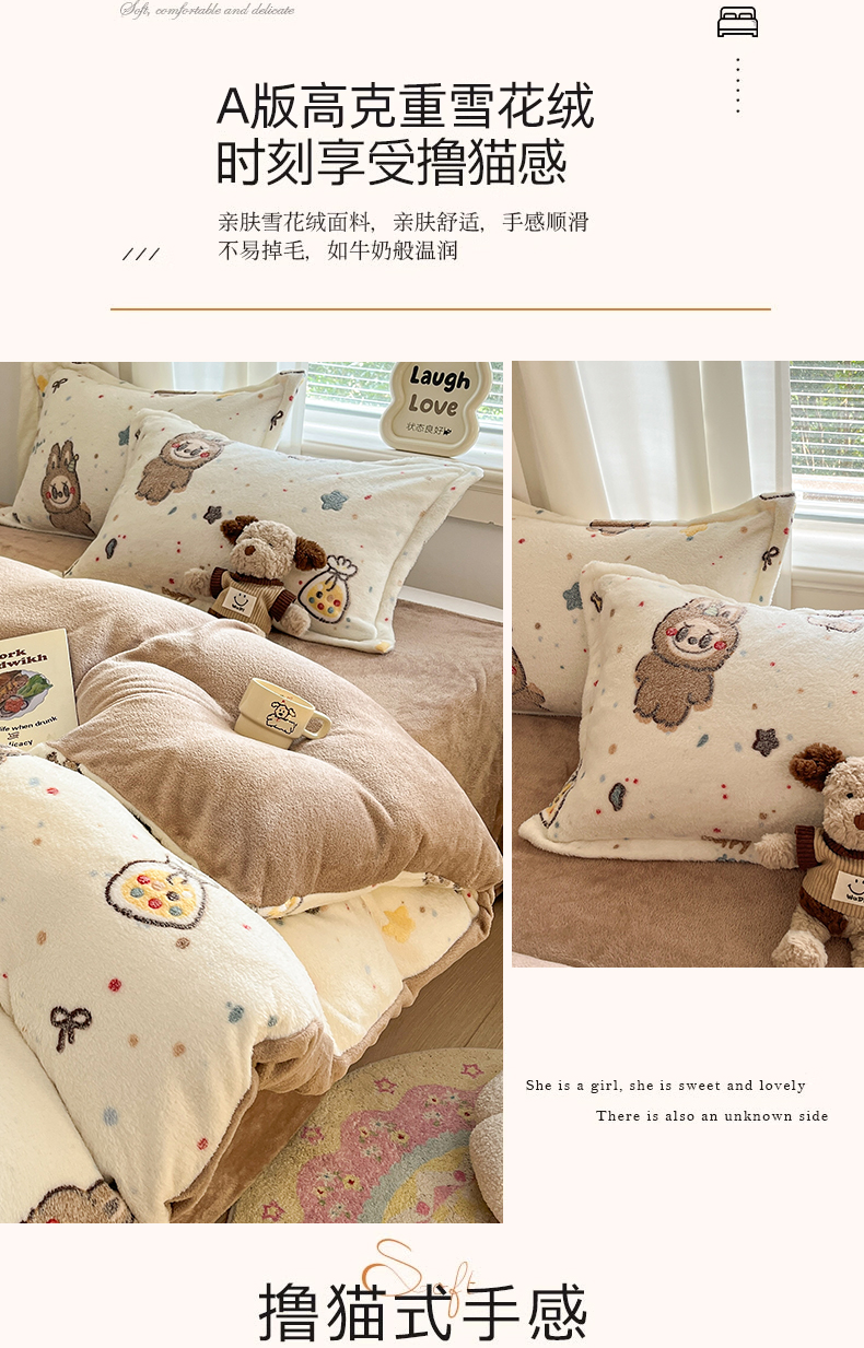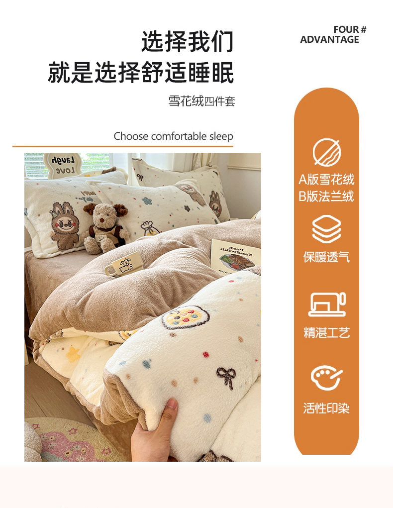 当前位置: 91家纺网 > 商品网购 > 床品套件 > 四件套 > 法莱绒四件套 > 川悦生活2025新款立体雪花绒印花大床四件套系列二场景二 巧克力宝贝