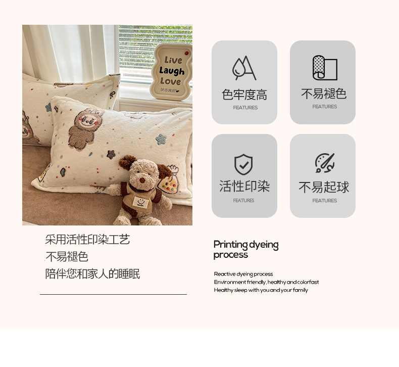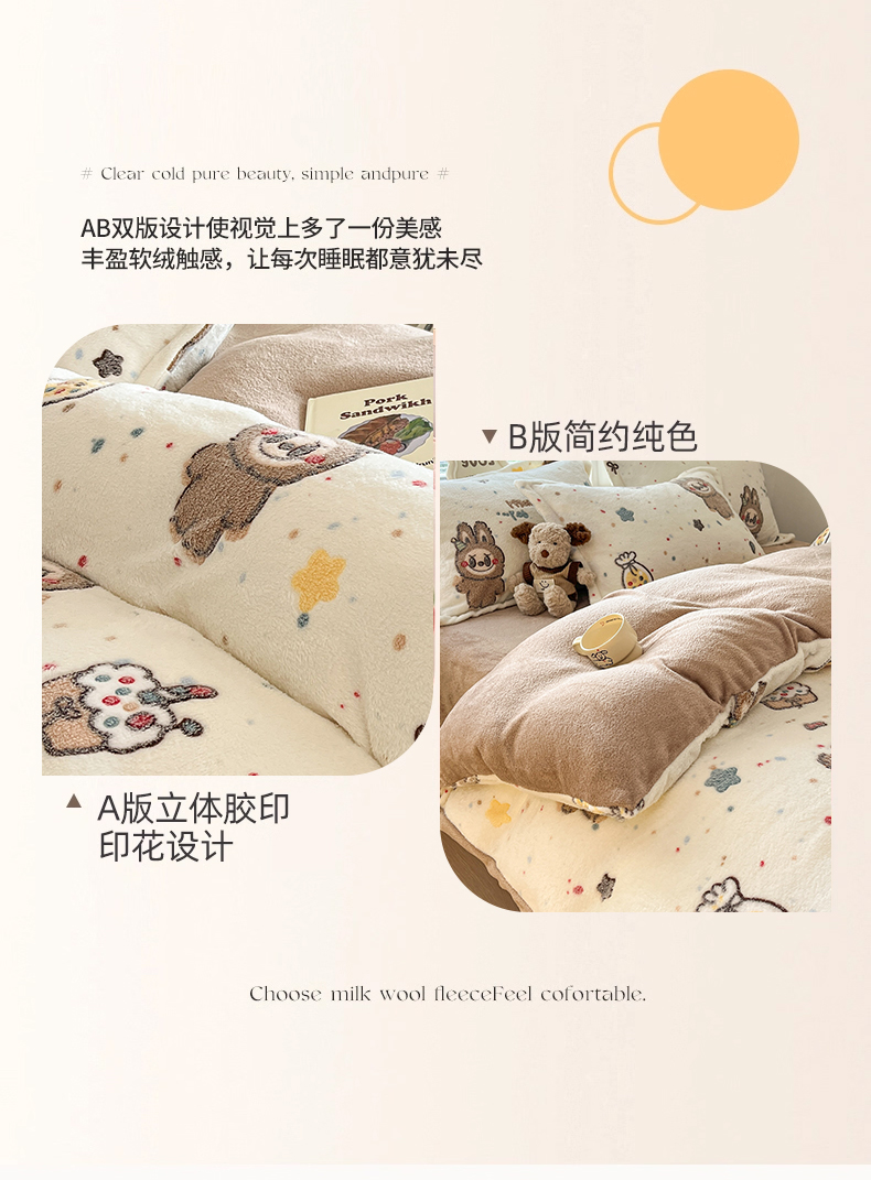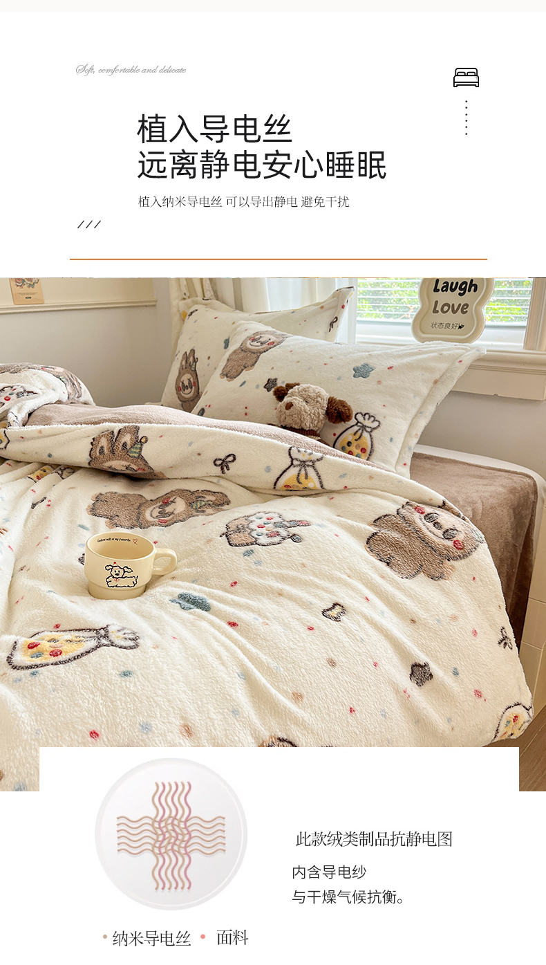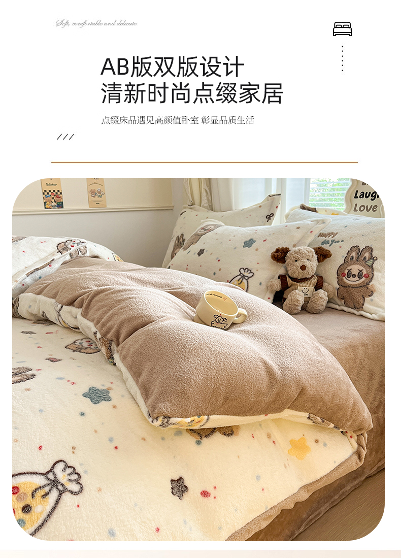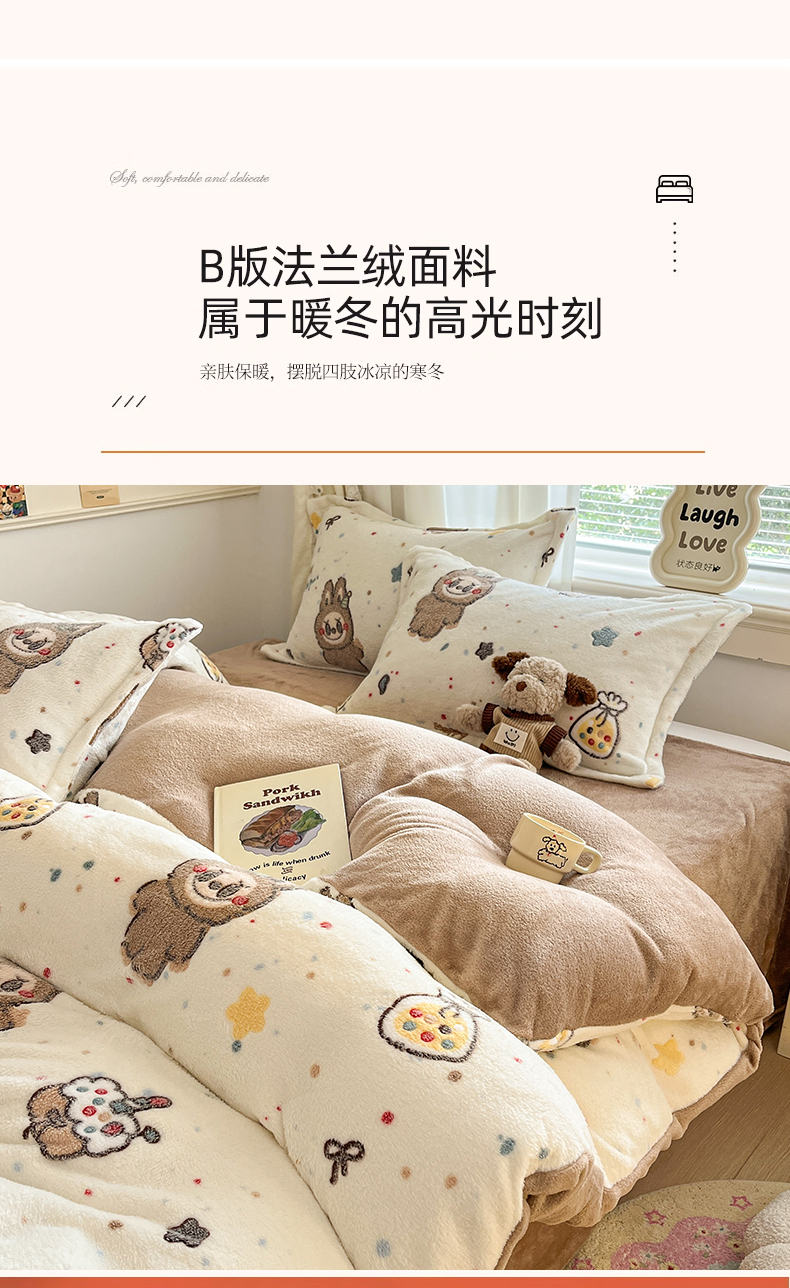当前位置: 91家纺网 > 商品网购 > 床品套件 > 四件套 > 法莱绒四件套 > 川悦生活2025新款立体雪花绒印花大床四件套系列二场景二 巧克力宝贝