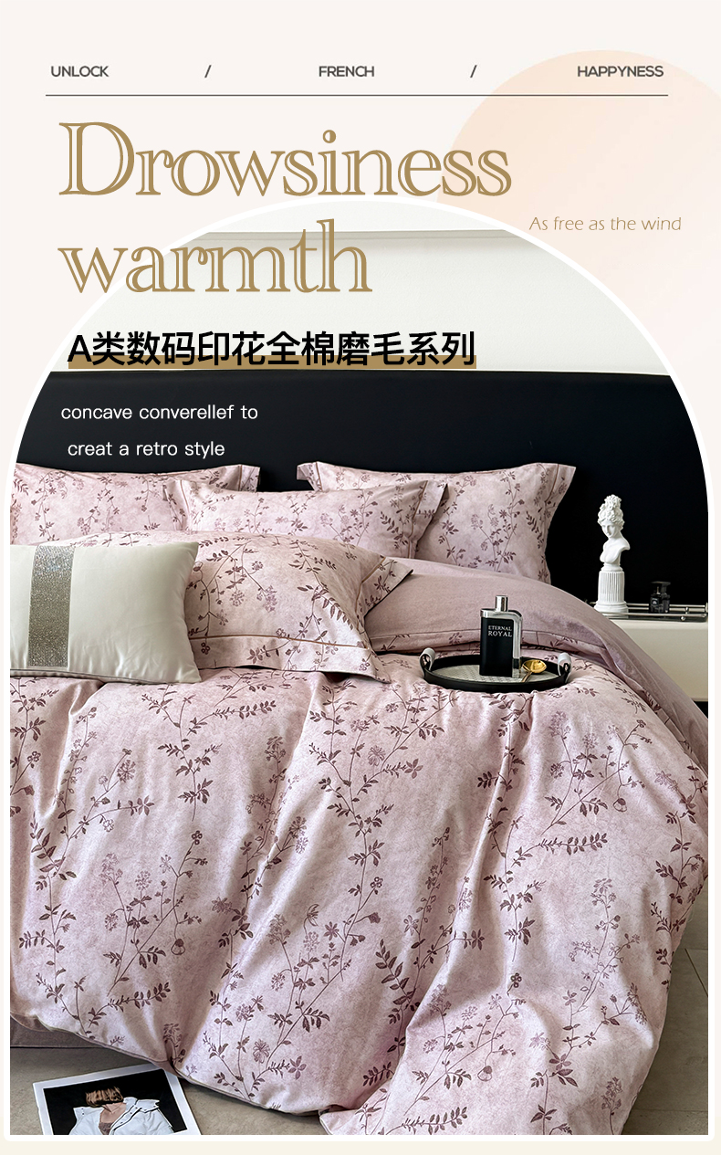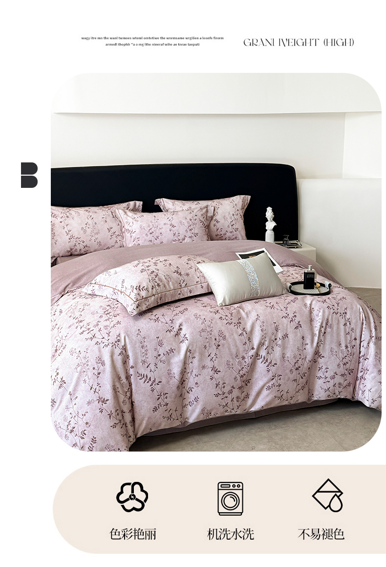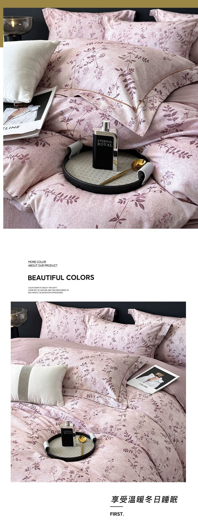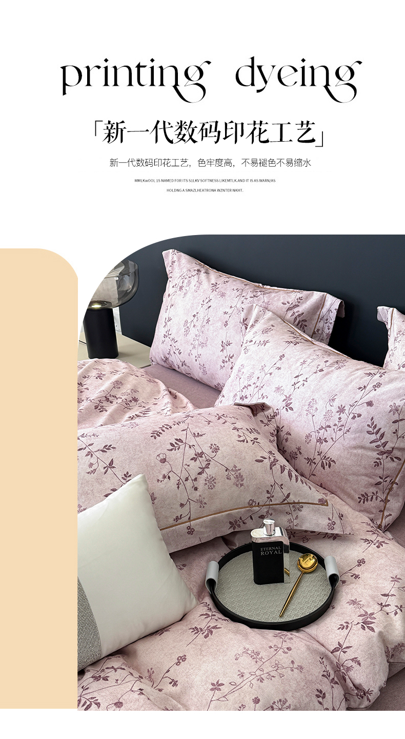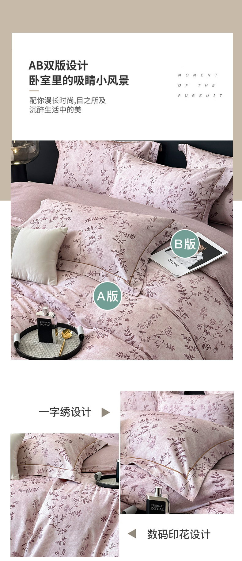 当前位置: 91家纺网 > 商品网购 > 床品套件 > 四件套 > 普通磨毛四件套 > 清雅福2025新款A类全棉磨毛数码印花四件套 织梦·粉紫