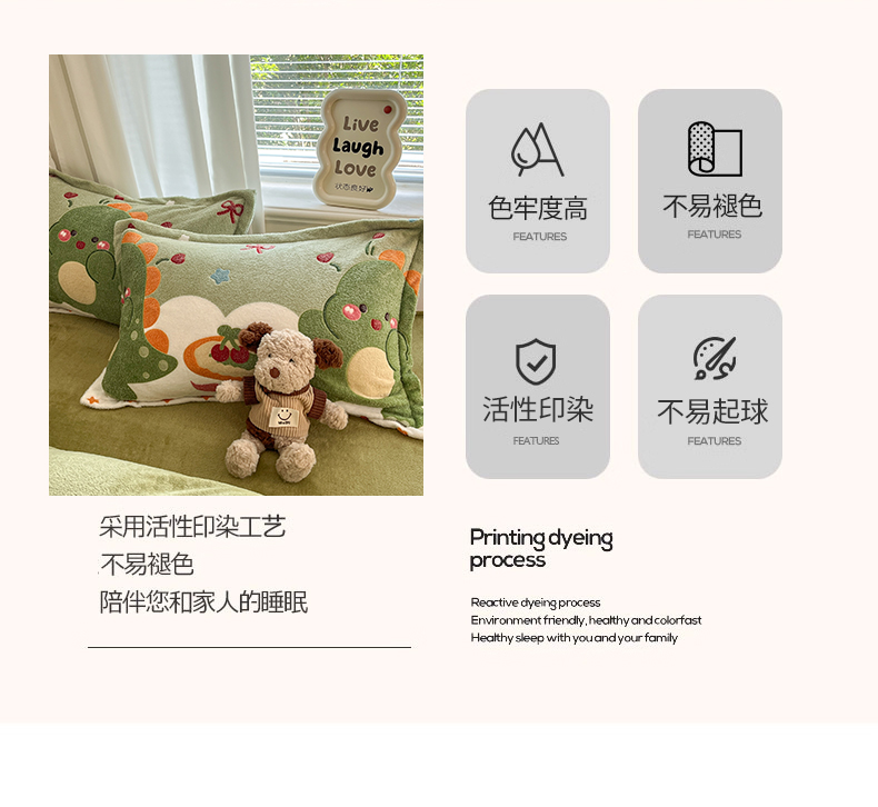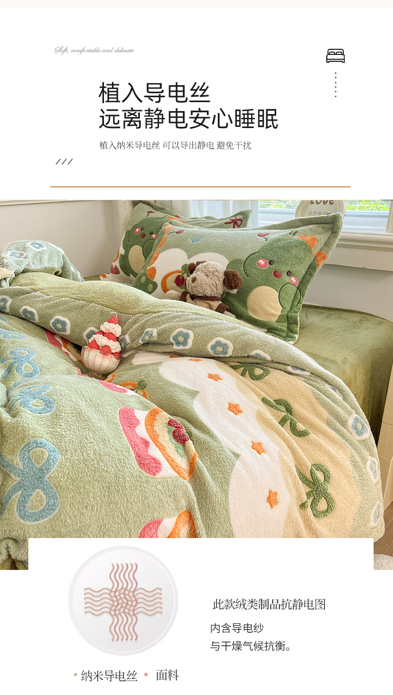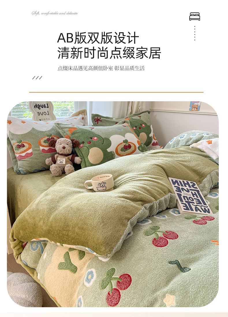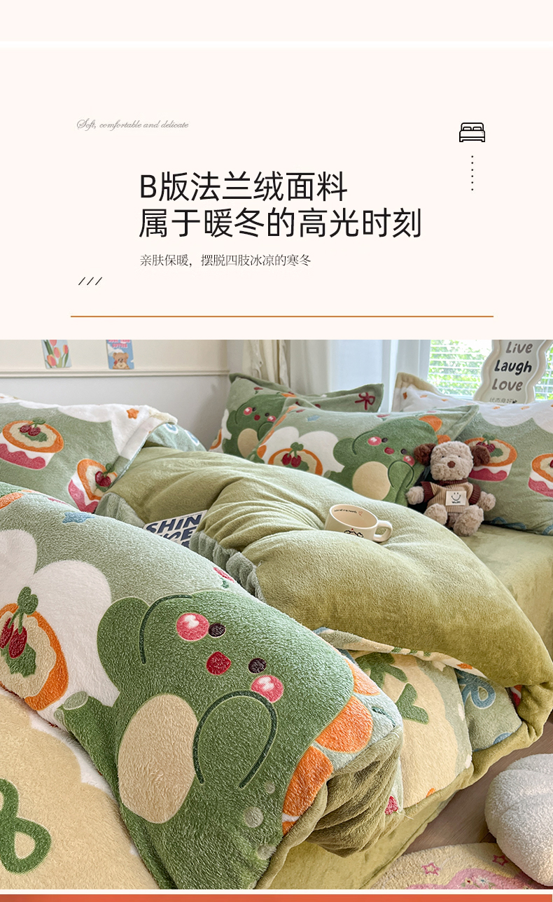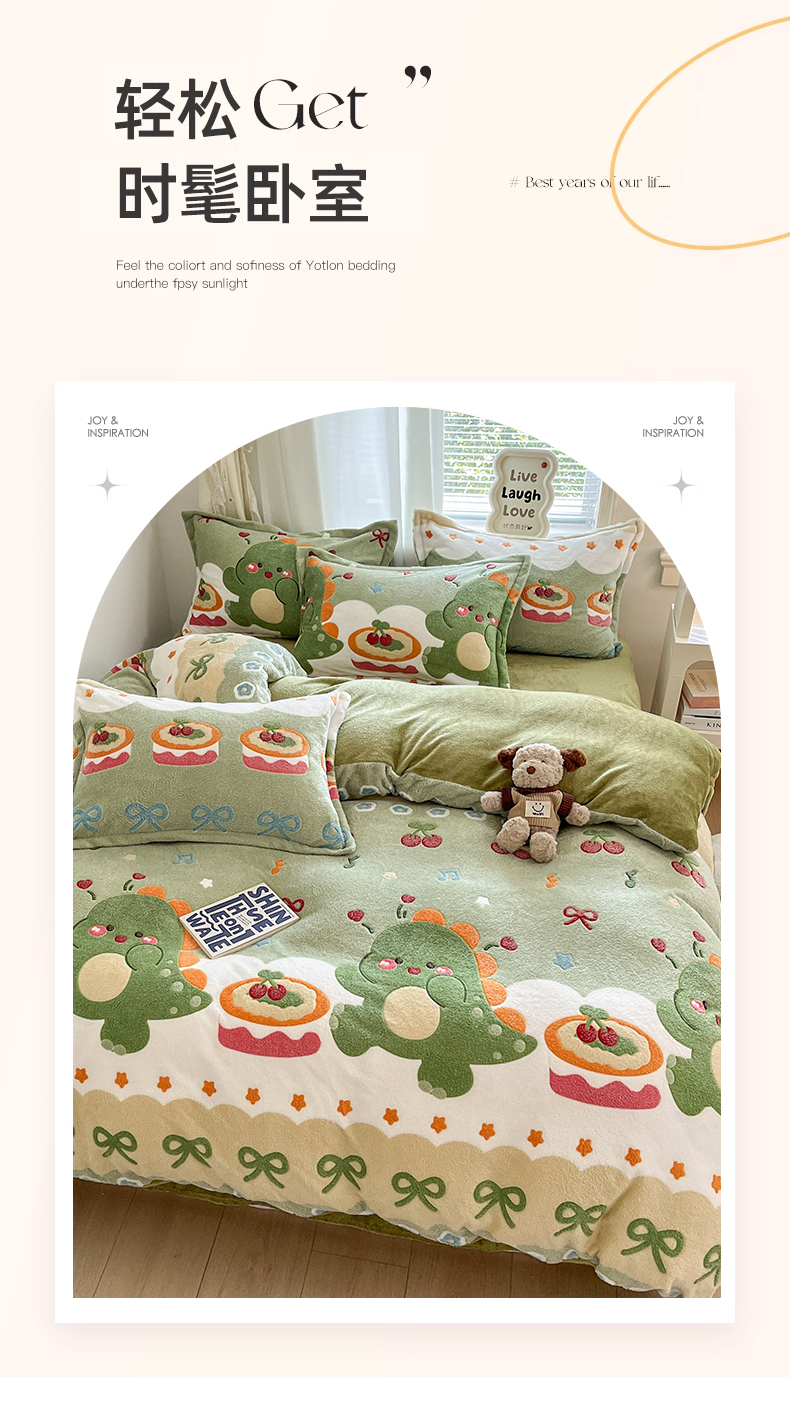 当前位置: 91家纺网 > 商品网购 > 床品套件 > 四件套 > 法莱绒四件套 > 川悦生活 2025新款立体雪花绒印花大床四件套系列一场景二 甜系龙龙