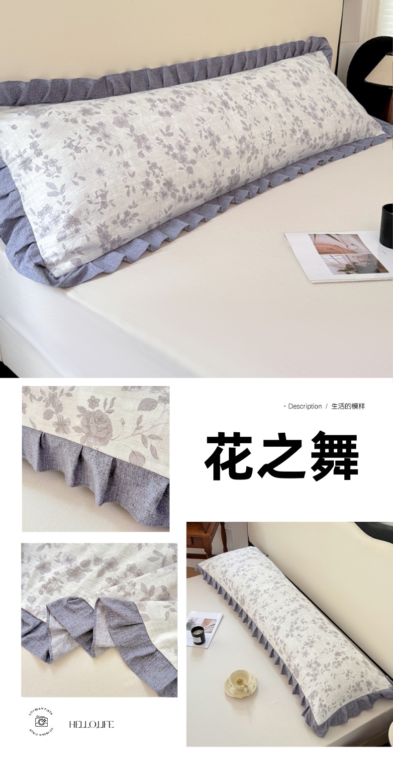 商品名称:梦舒羽 2025新款可水洗原麻双人花边枕套宿舍情侣枕芯套加长枕头套内胆套仿亚麻 花之舞