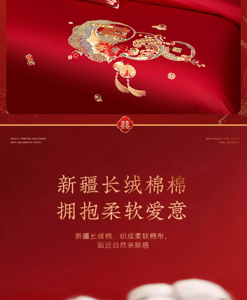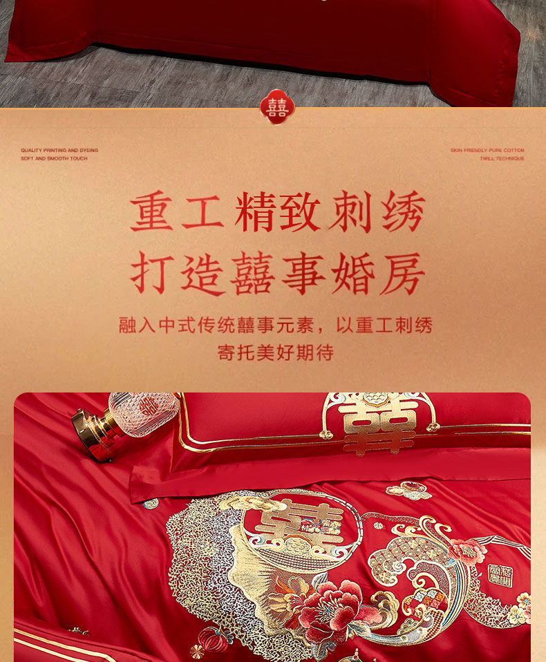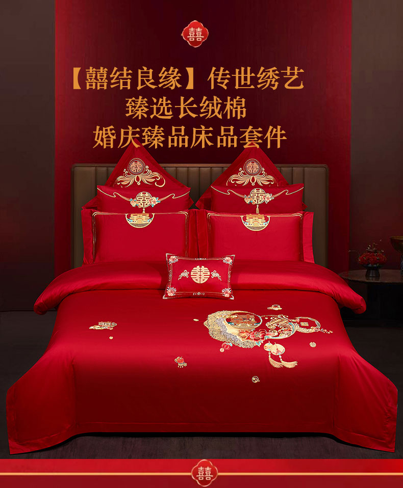 当前位置: 91家纺网 > 商品网购 > 床品套件 > 四件套 > 婚庆四件套 > 蒂爵 2025新款婚庆长绒棉时尚小红书爆款刺绣婚庆四件套多件套-无提花款 合家欢