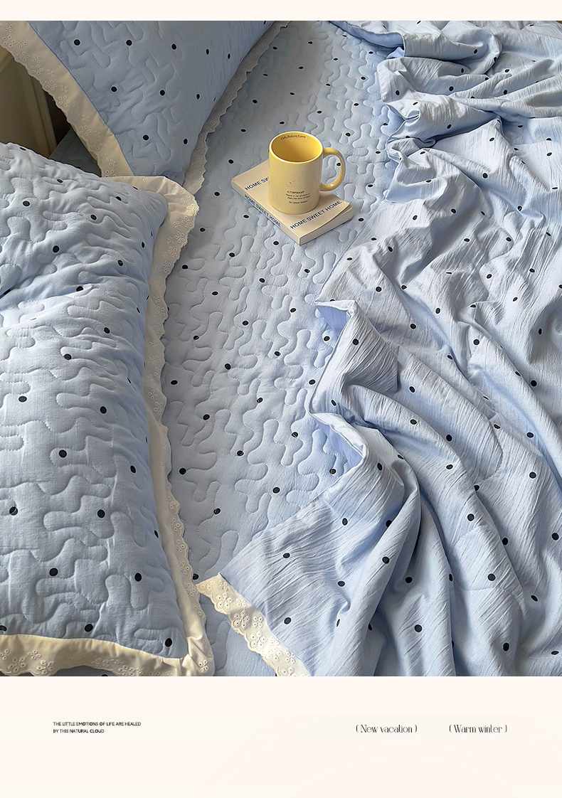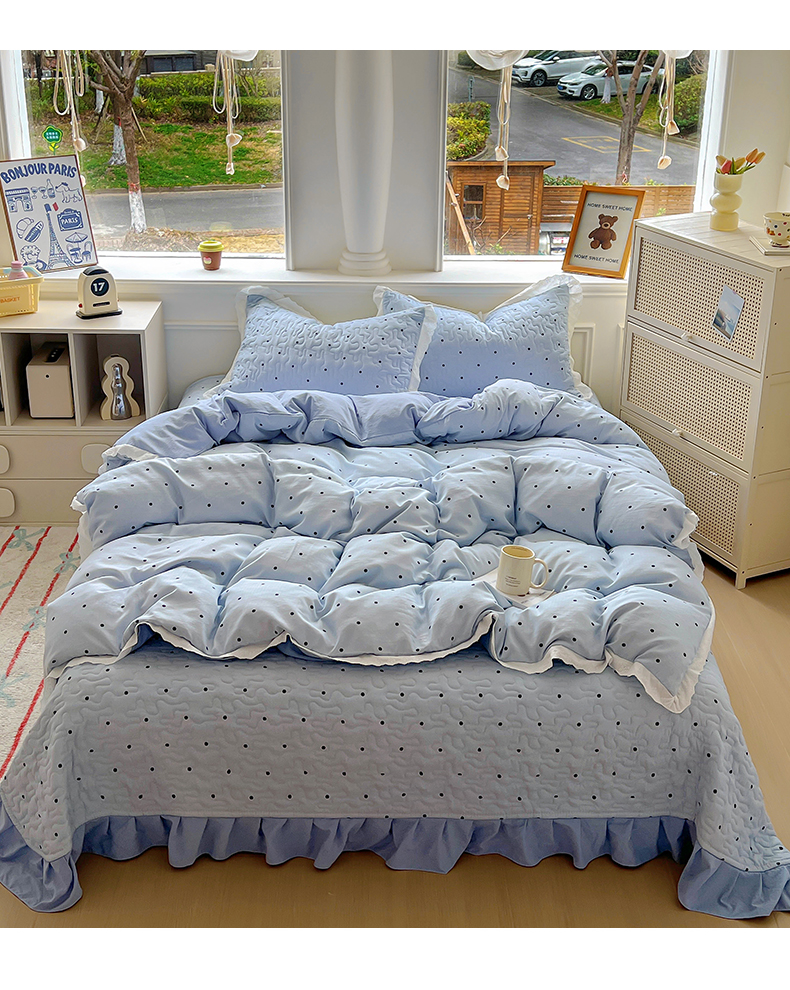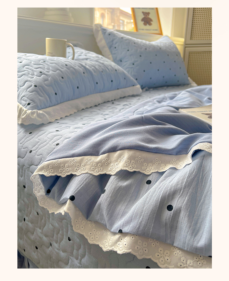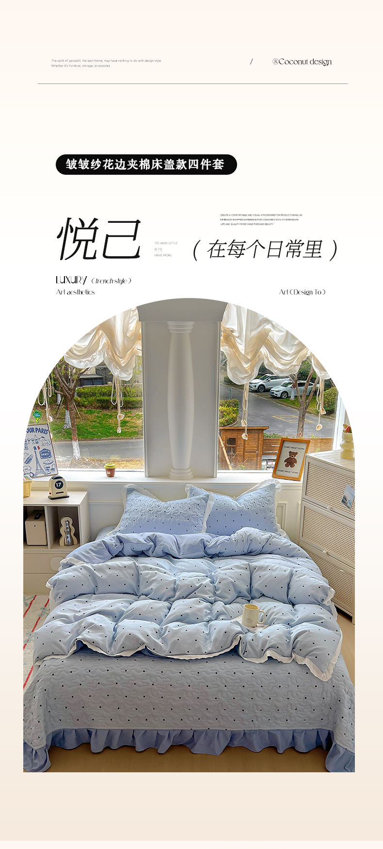 商品名称:美梦家纺 2025新款皱皱纱花边夹棉床盖四件套 芋泥啵啵