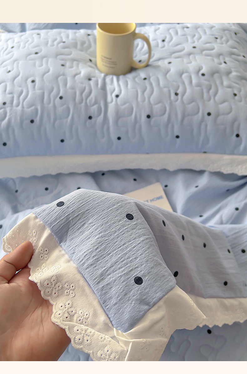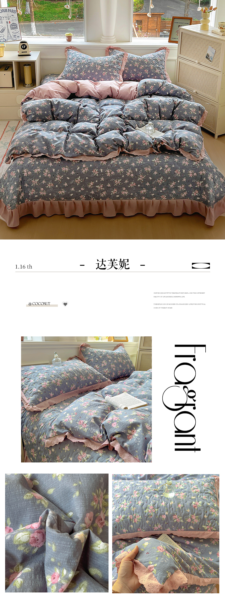 美梦家纺 2025新款皱皱纱花边夹棉床盖四件套 芋泥啵啵