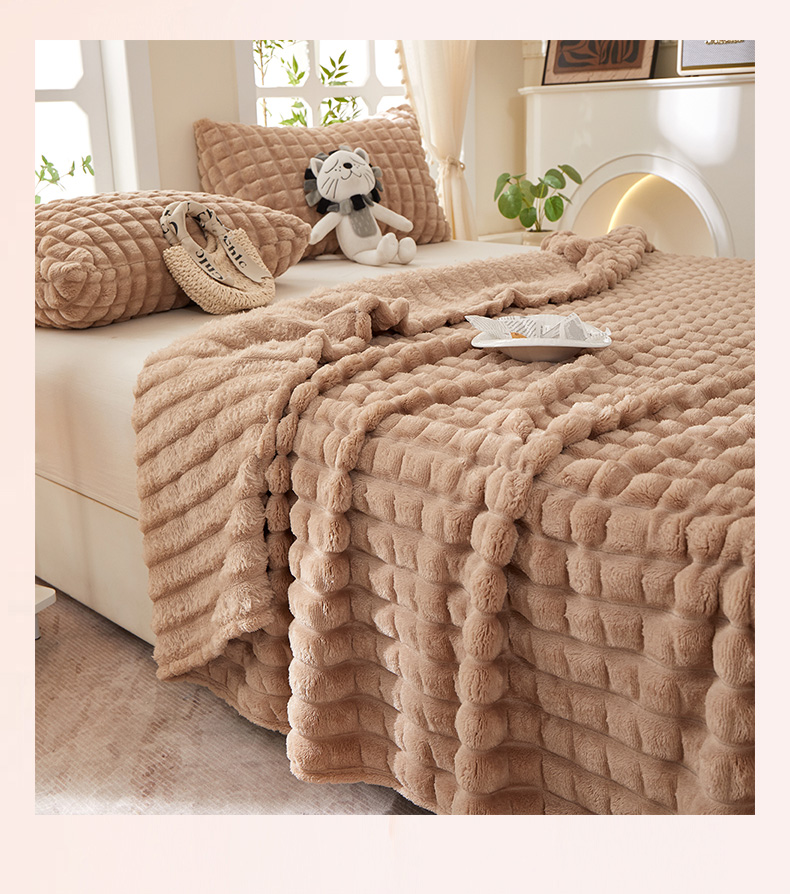 (总)楼兰公主 2025新款竹节绒毛毯,豆沙粉,卡其色,抹茶绿,奶油咖,深灰色,烟雾蓝,组合图仅供参考