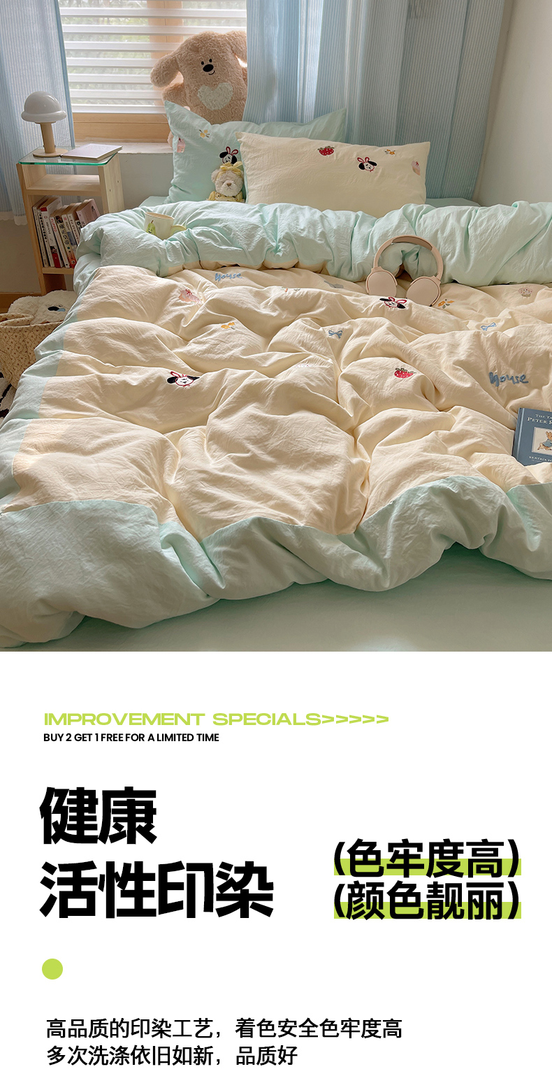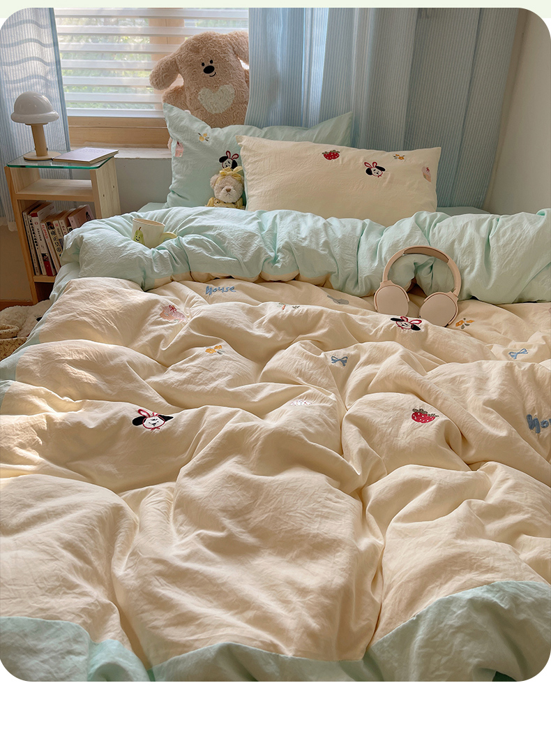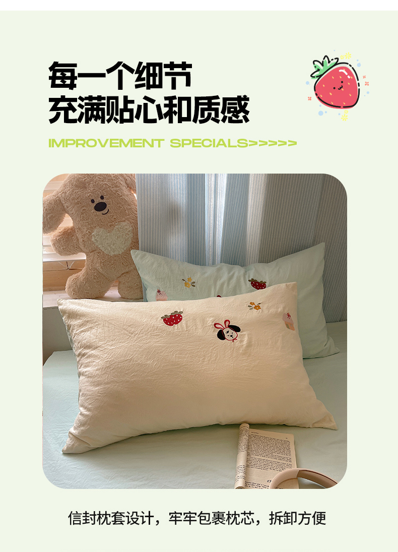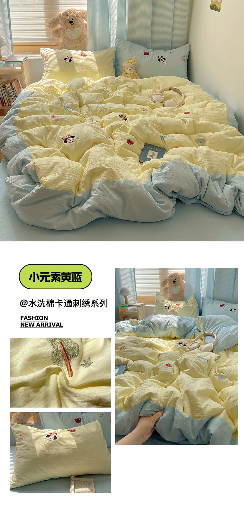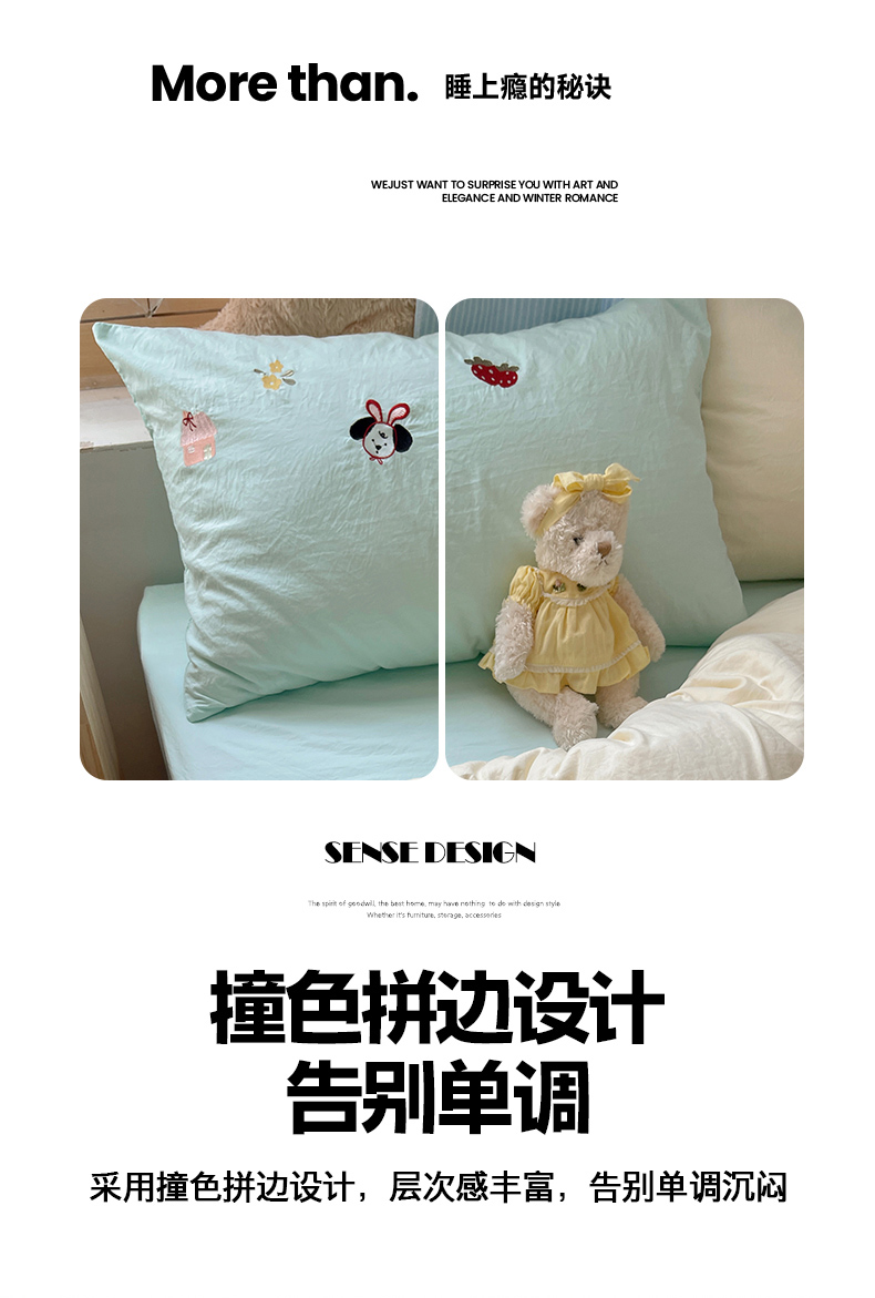 当前位置: 91家纺网 > 商品网购 > 床品套件 > 四件套 > 水洗棉四件套 > 轻奢坊 2025新款水洗棉可爱小元素绣花拼角工艺四件套 小元素粉