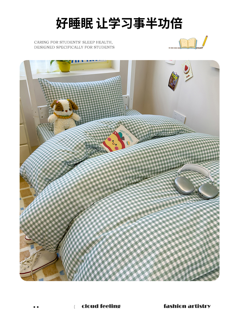 商品名称:默忆 2025新款亲肤水洗棉学生三件套 灰白条纹