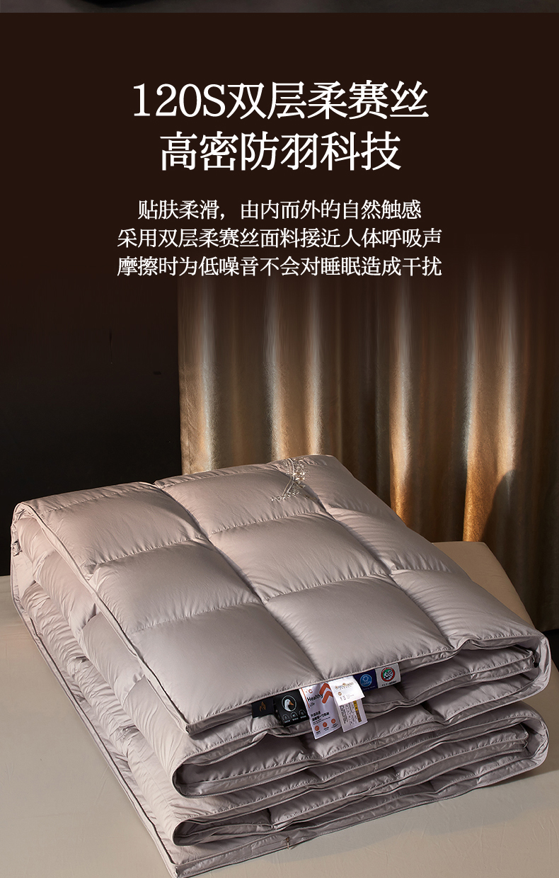 • 91家纺网 家纺一手货源 找家纺 (总)织梦人羽绒工厂店 2025新款高端100支长绒棉德国进口软银丝全棉95鹅绒羽绒被,凤翎-黑金