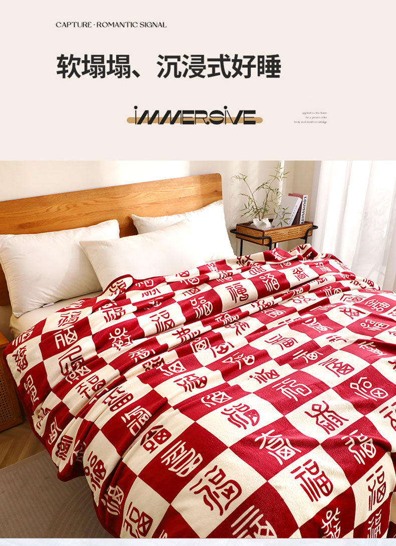 (总)格真 2025新款百福毯双面加厚法莱绒毛毯
